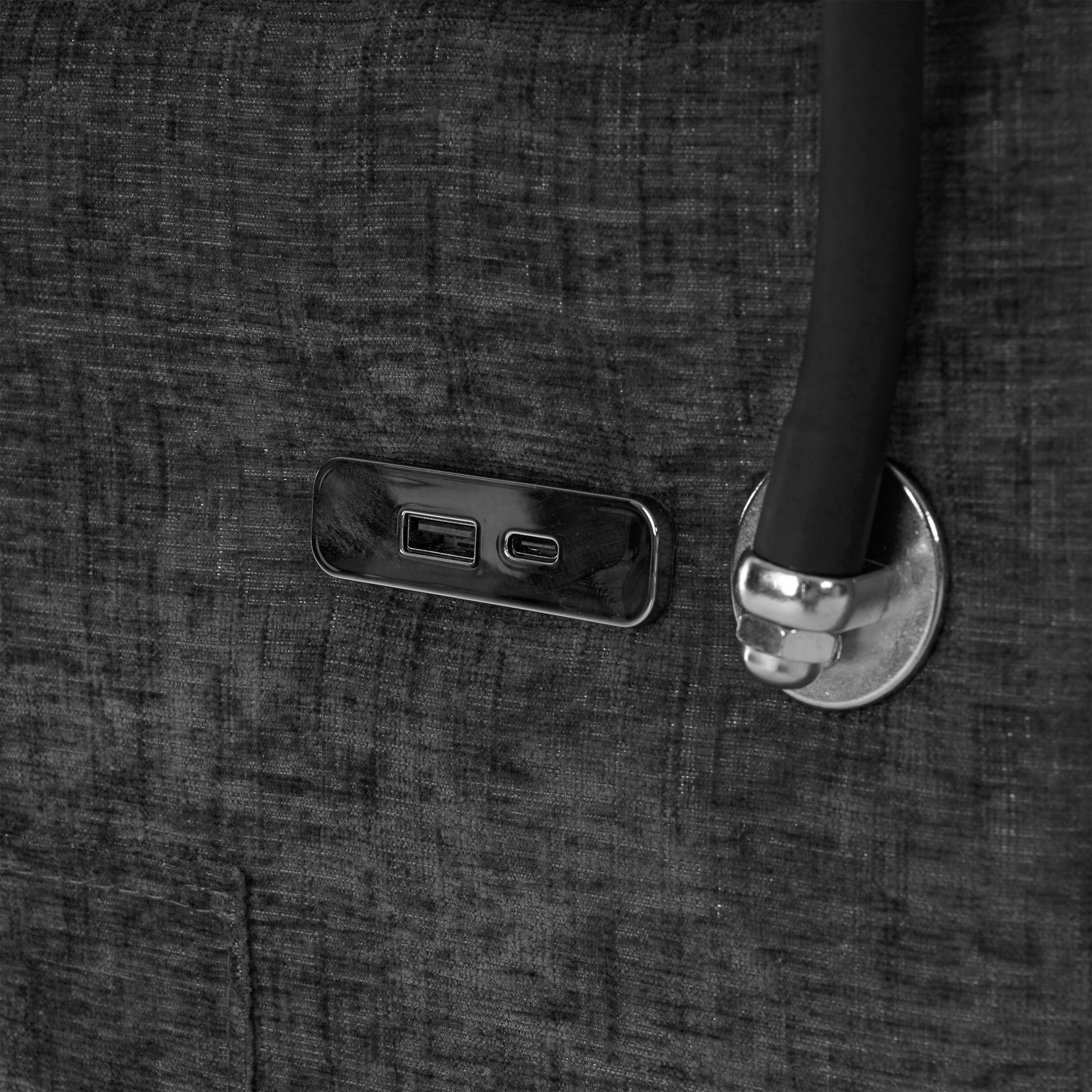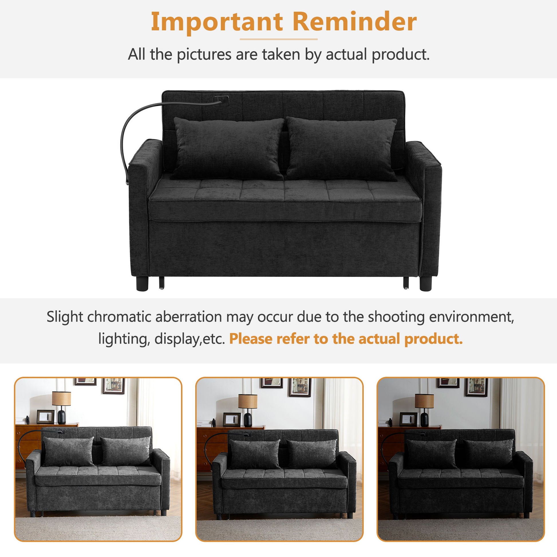 Contemporary Loveseat Sofa Bed Sleeper With Reversible Backrest Side Pockets USB Ports Phone Holder Chenille - Black