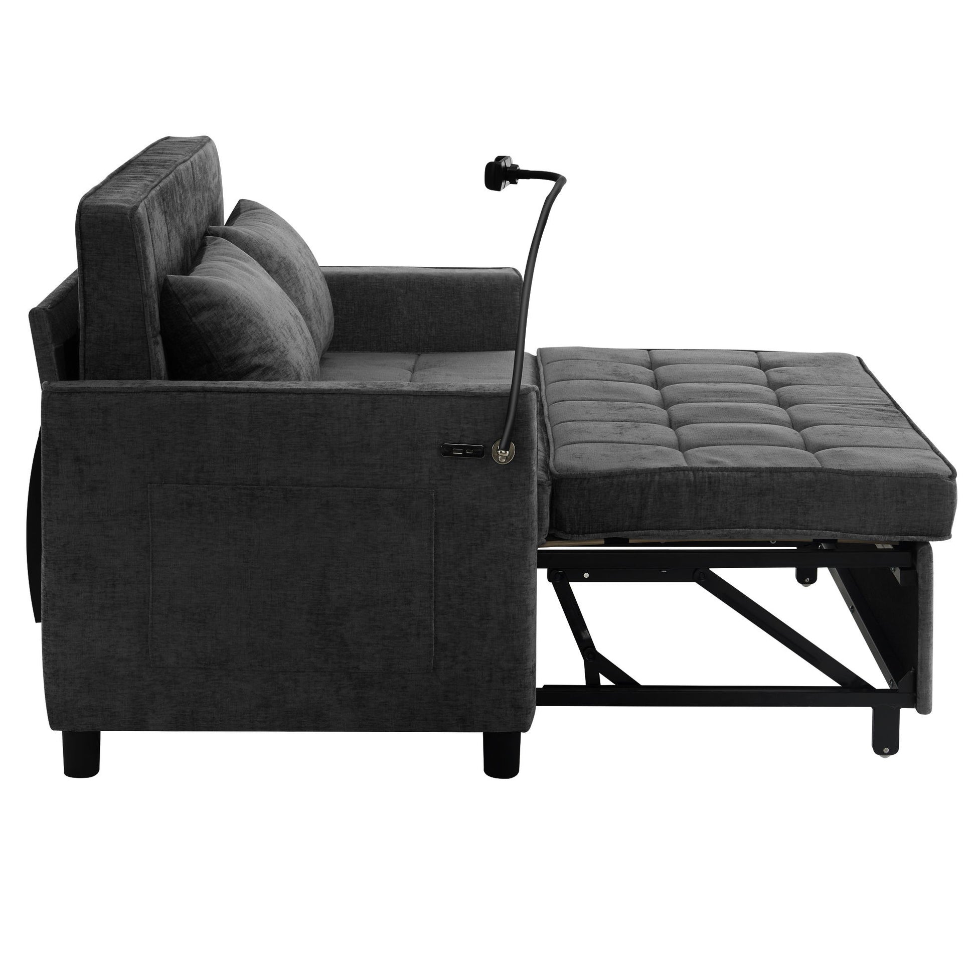 Loveseat Sofa Bed Sleeper With Reversible Backrest, Side Pockets, USB Ports, Phone Holder