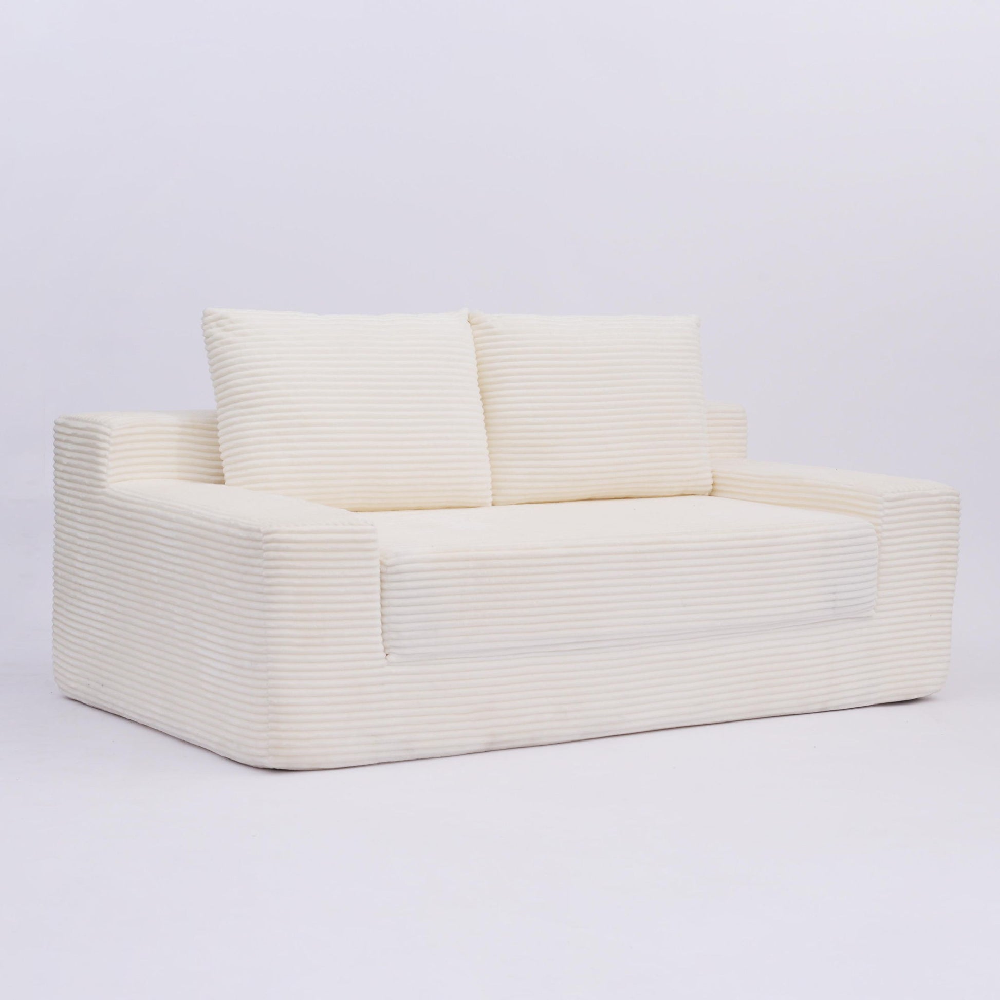 Loveseat Sofa, Comfortable Deep Seat Sofa Bed, Modern Small Corduroy Couch For Living Room Bedroom,Reversible Cushion With Pillows,No Assembly Required,White