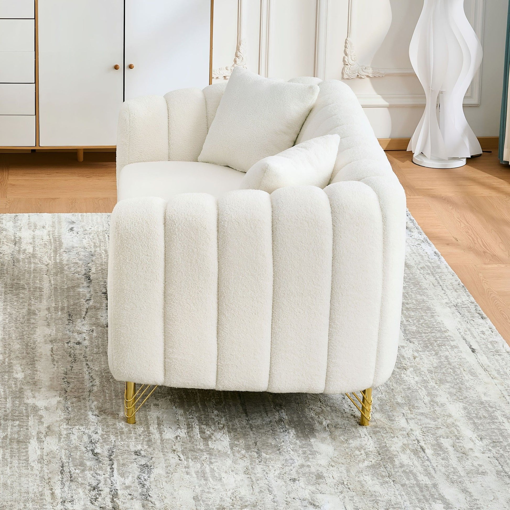 - Luxurious Design: Plush Chenille fabric and gold metal legs for a chic, modern look.
