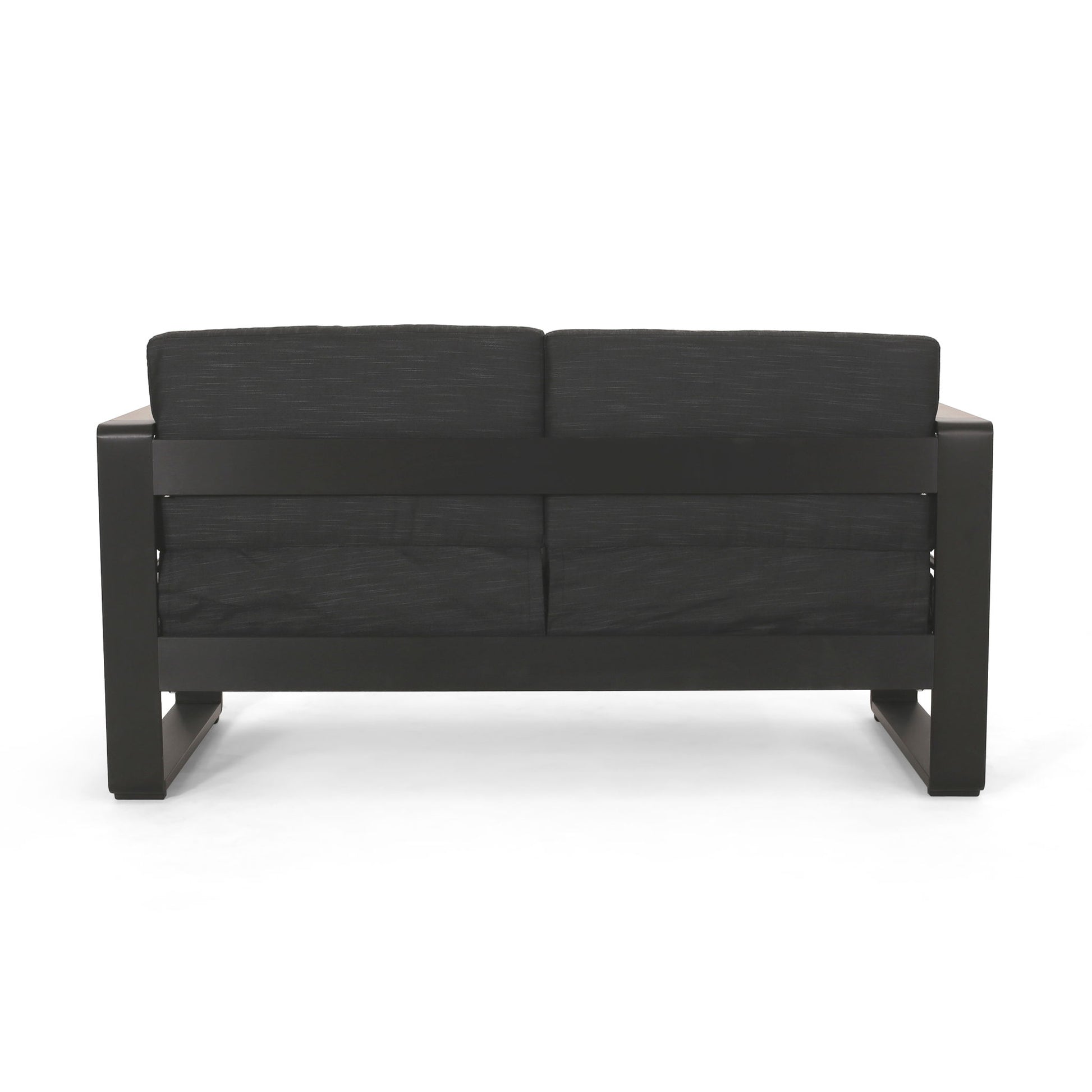 Loveseat With Slat Paneling And Aluminum Frame - Black