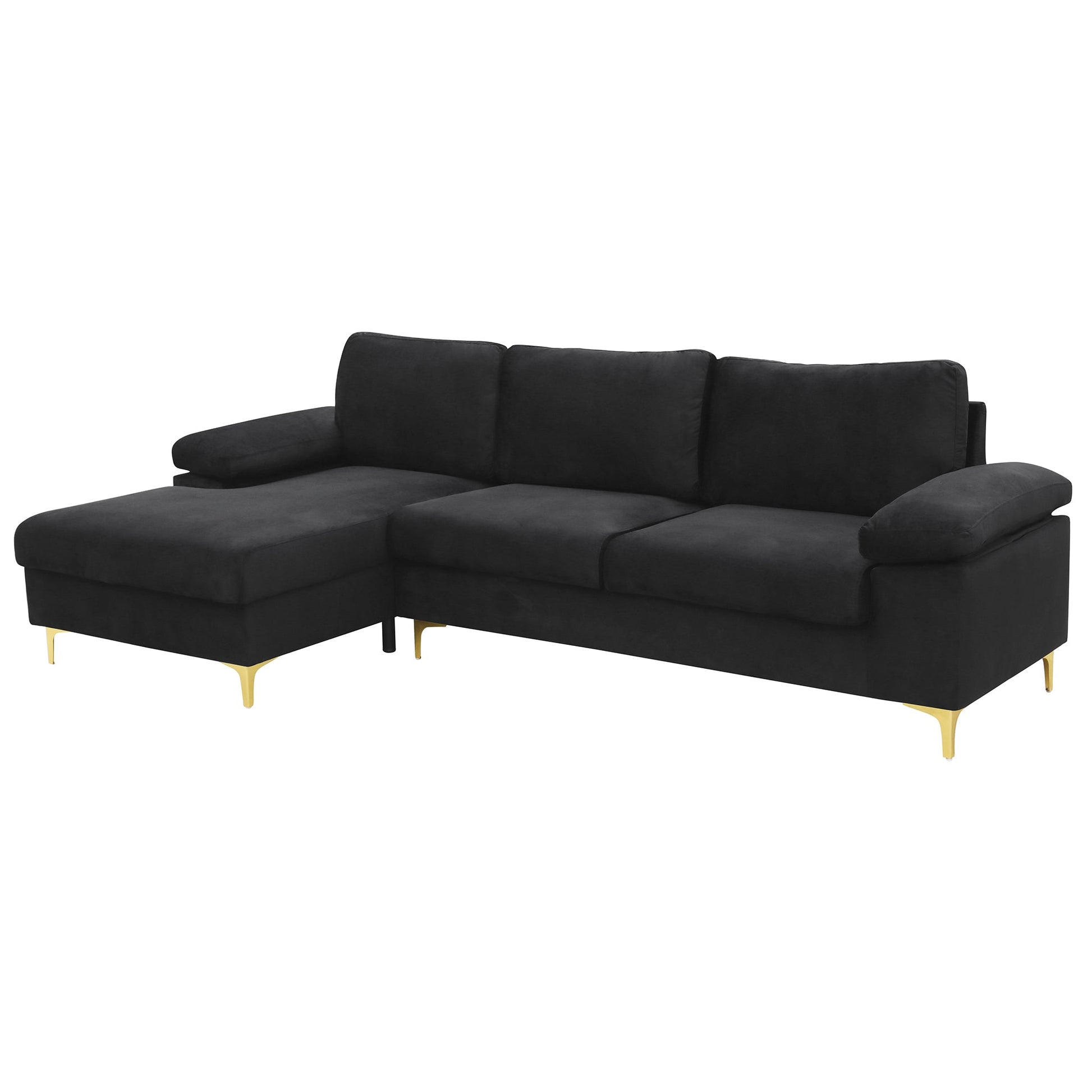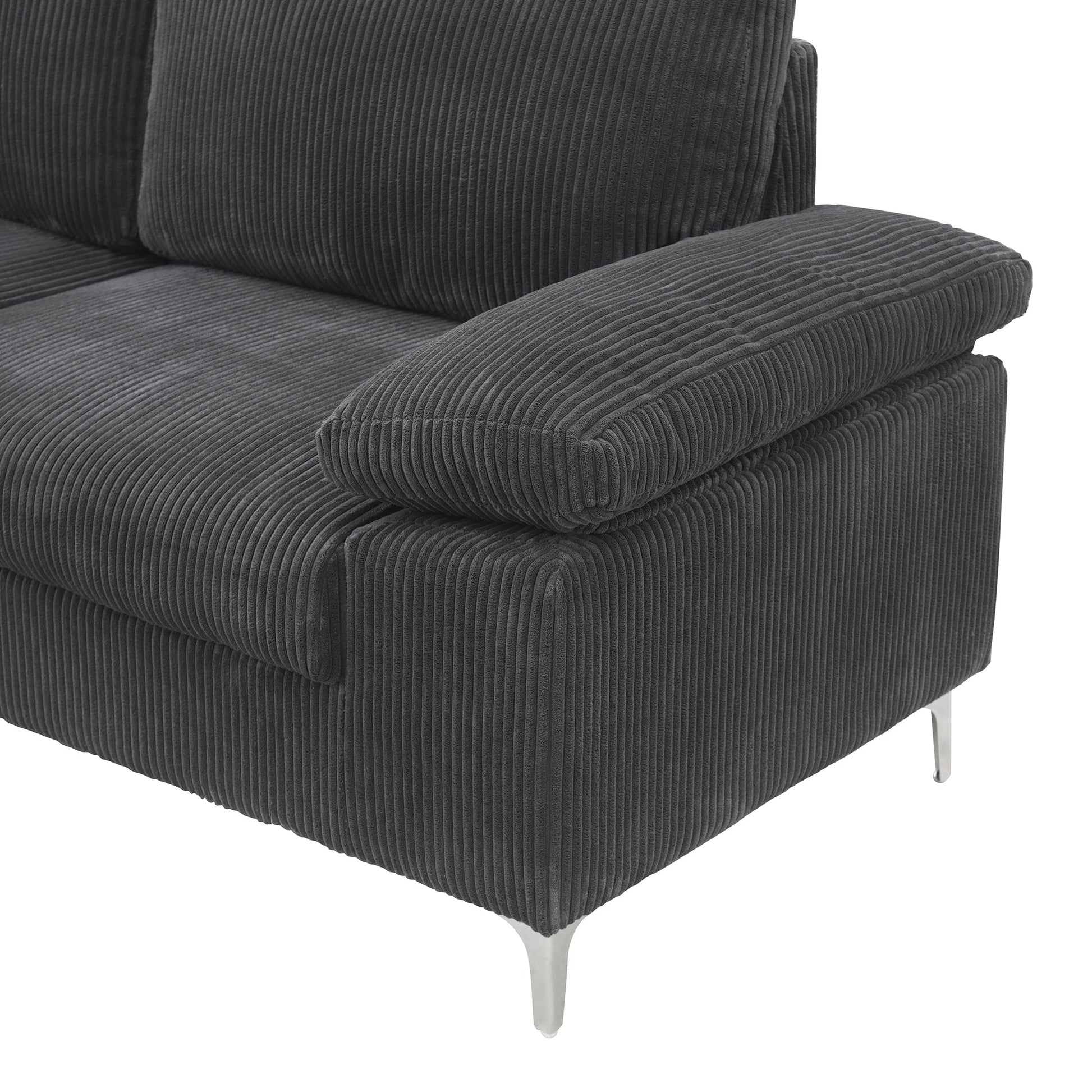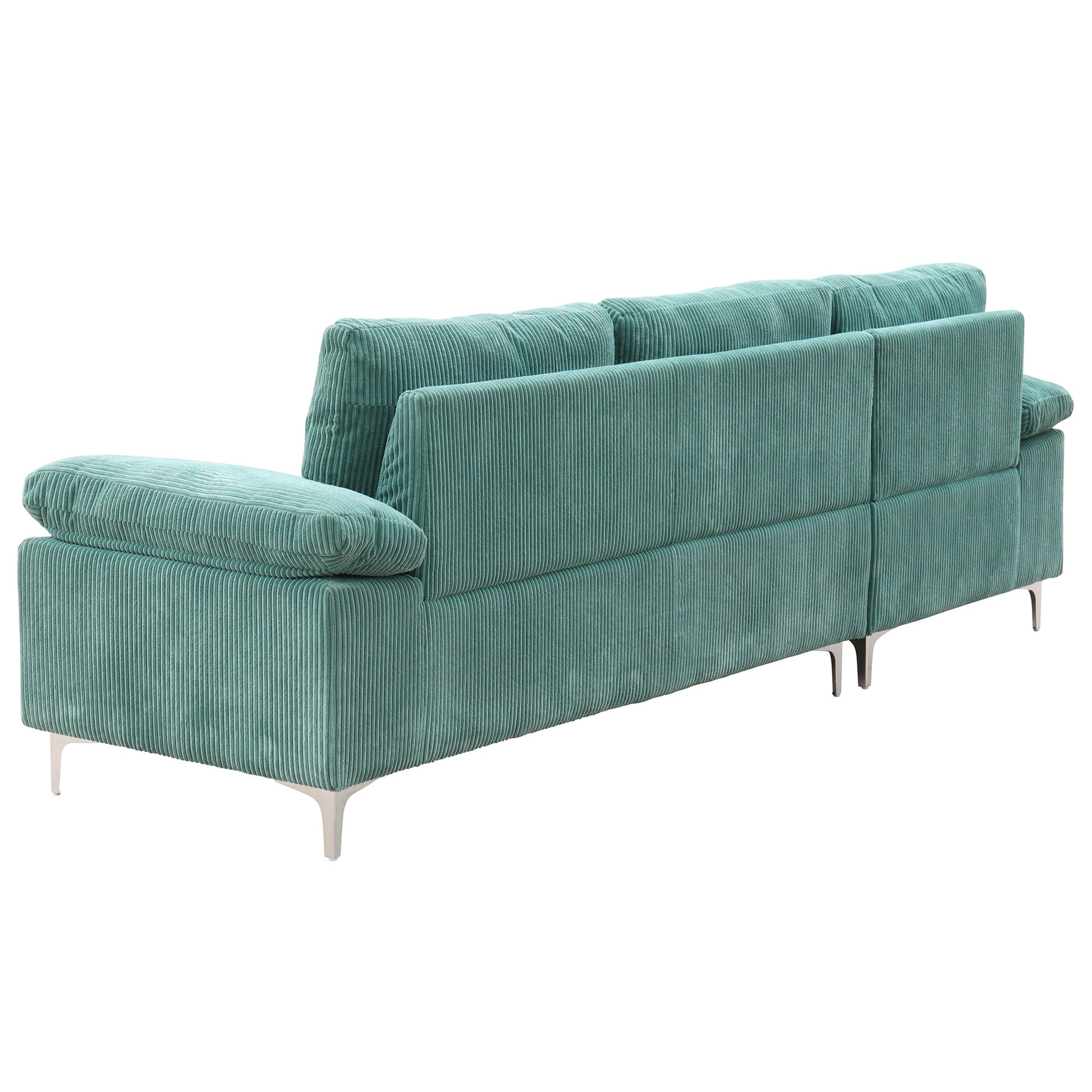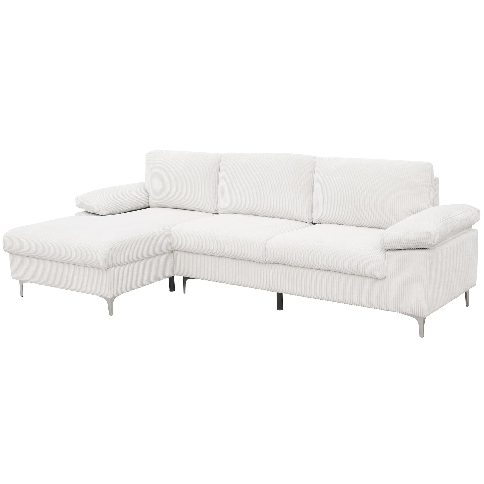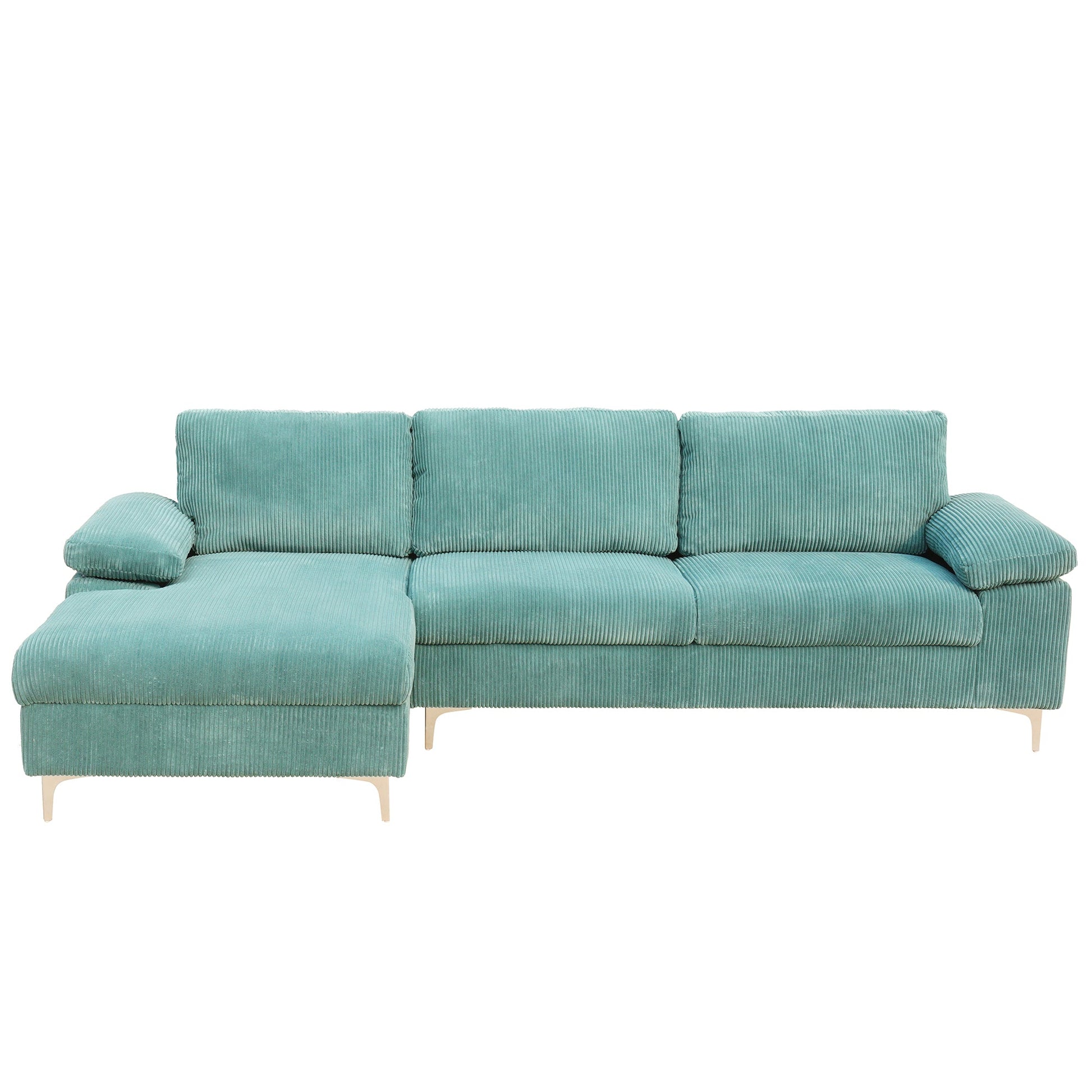 Elevate your living space with our upgraded Left Corner Sectional Sofa, featuring premium materials and exceptional comfort. Choose from four stylish corduroy colors—white, yellow, grey, or blue—with argent metal legs, or opt for luxurious black or green velvet with gold metal legs. This sectional boasts a solid wood structure, high-density foam cushions, and pocket springs, ensuring durability and superior support. Its generous dimensions of 103.5"L x 52"D x 30.3"H provide ample seating for family and guests. Assembly required. Transform your home with this blend of modern elegance and cozy comfort.