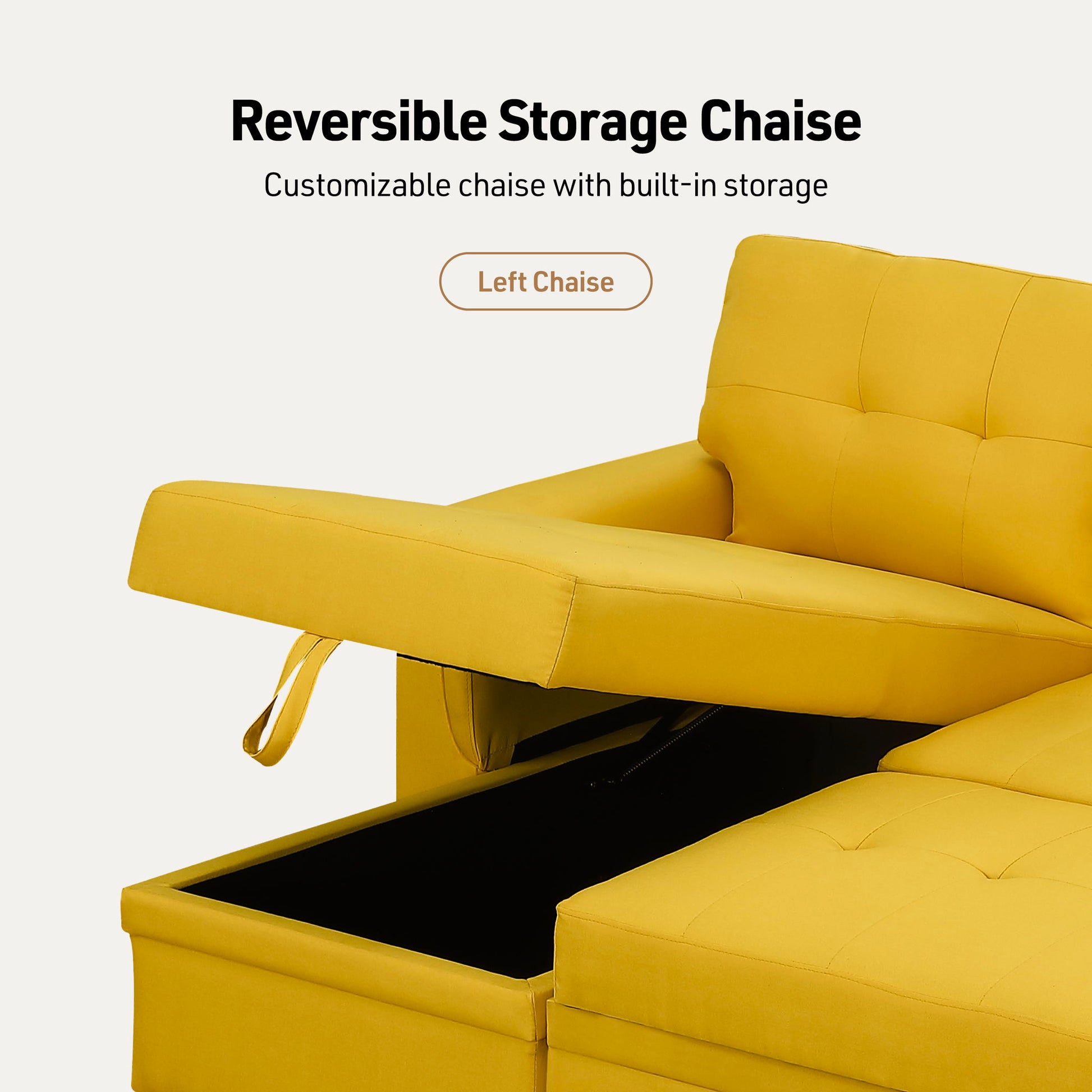 Lucca - Linen Reversible Sleeper Sectional Sofa With Storage Chaise - Yellow