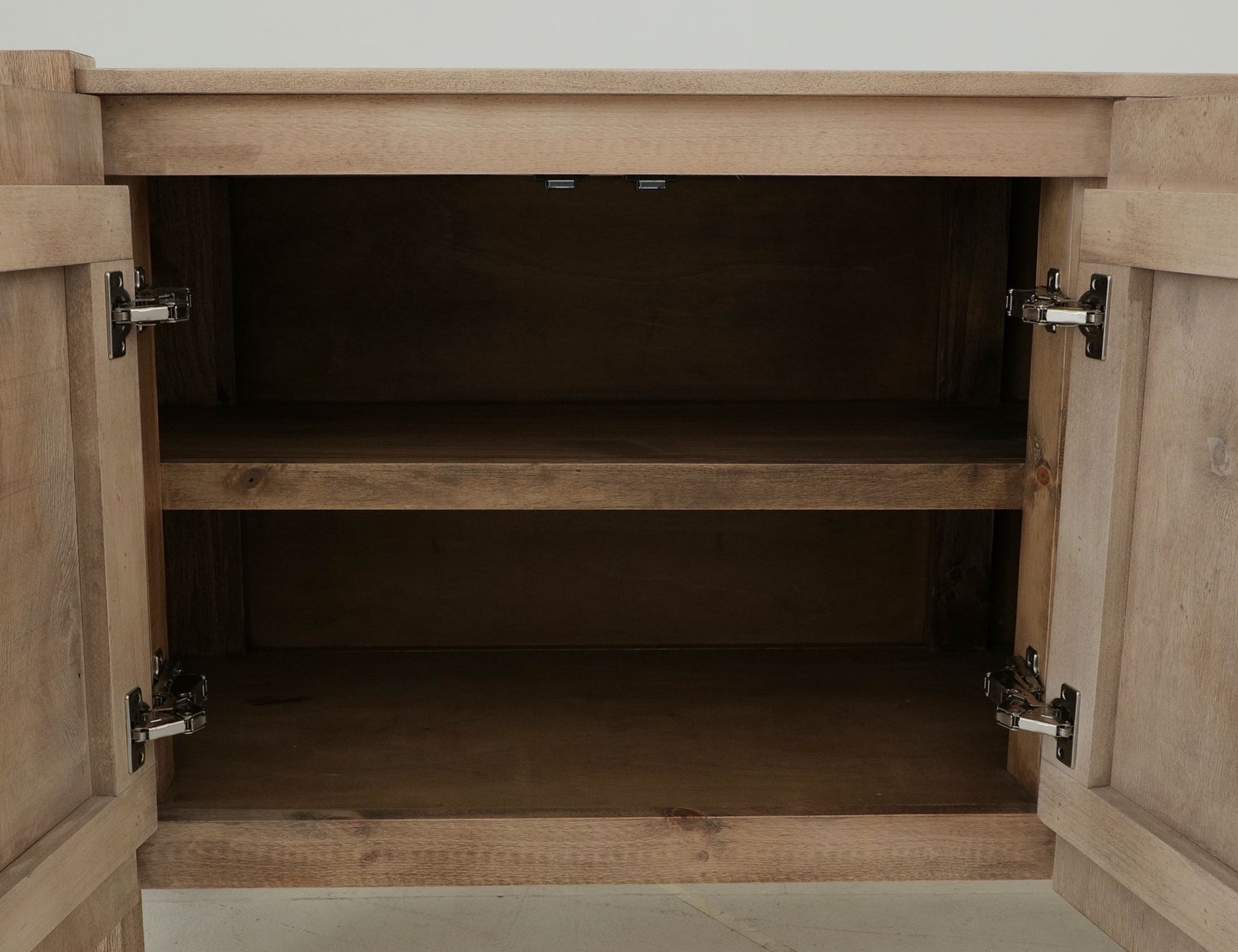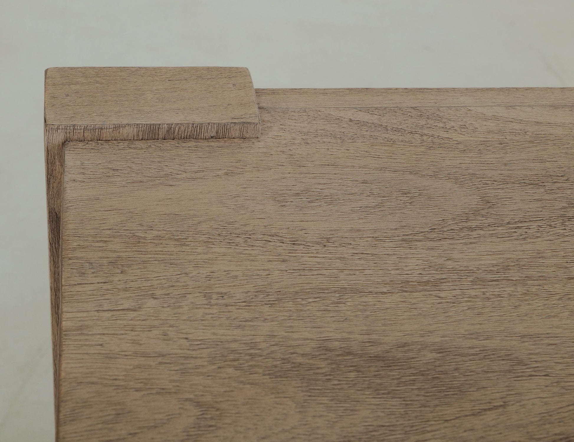 - Multi-step lacquer finish in a sand brown showcases a seamless wood texture