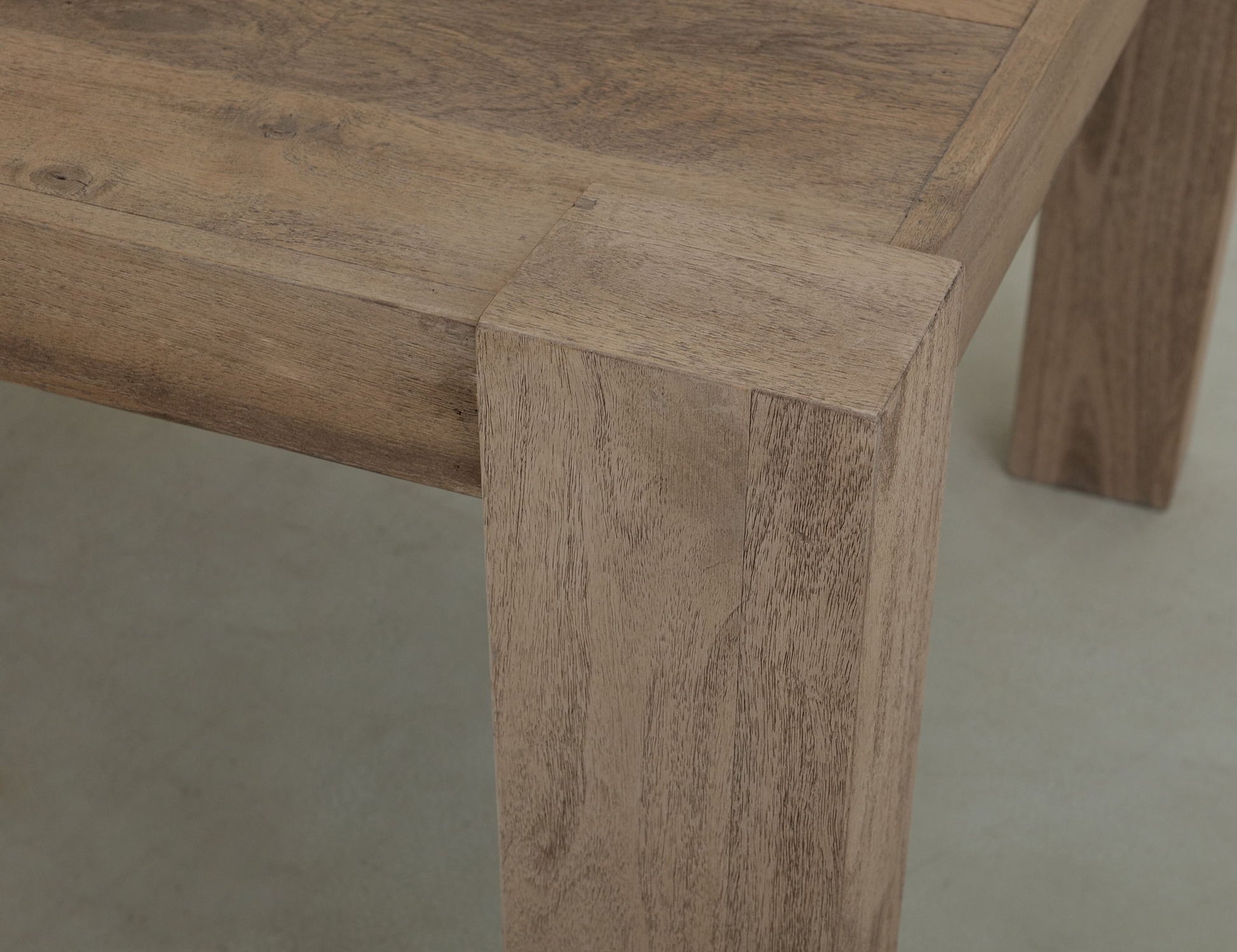- Multi-step lacquer finish in a sand brown showcases a seamless wood texture.