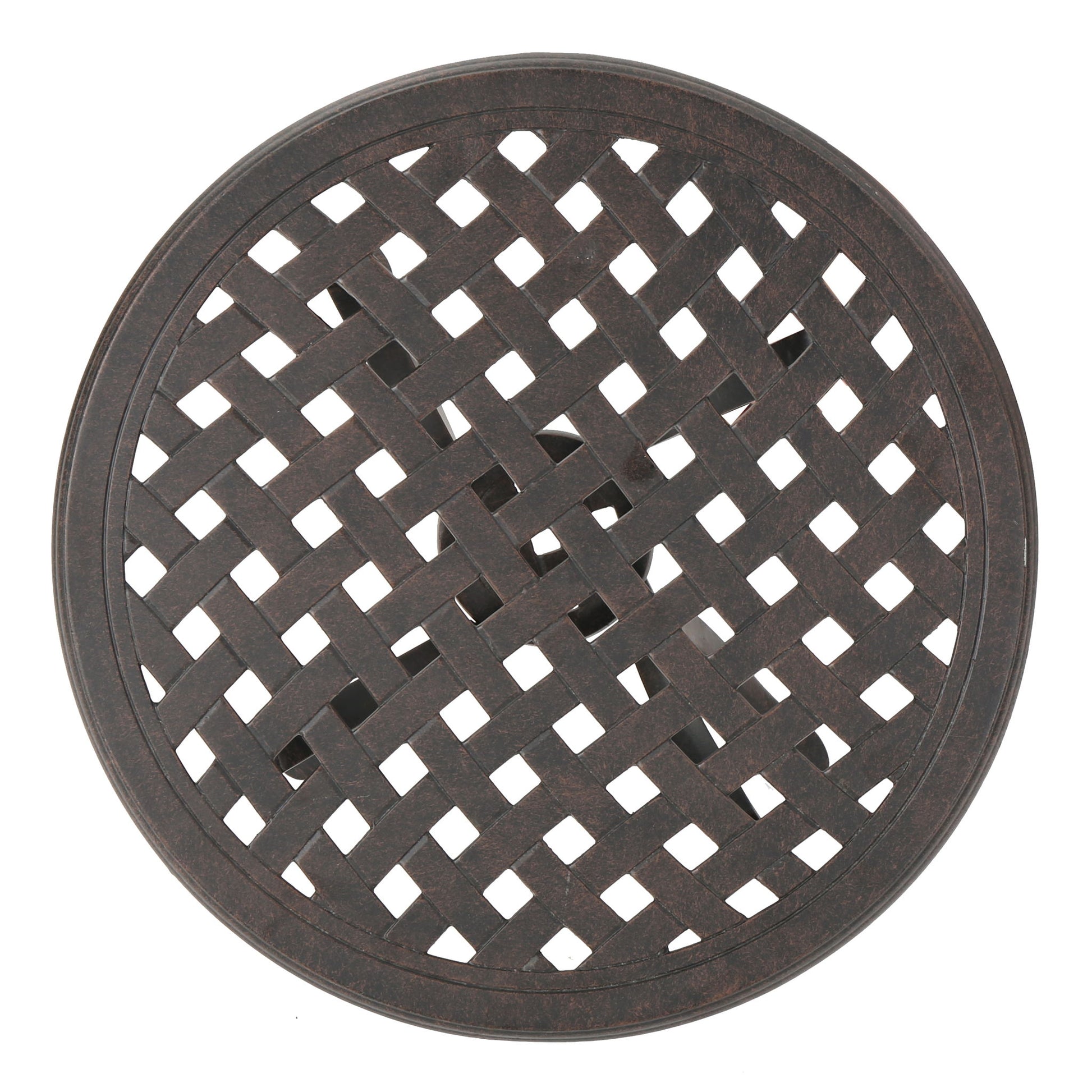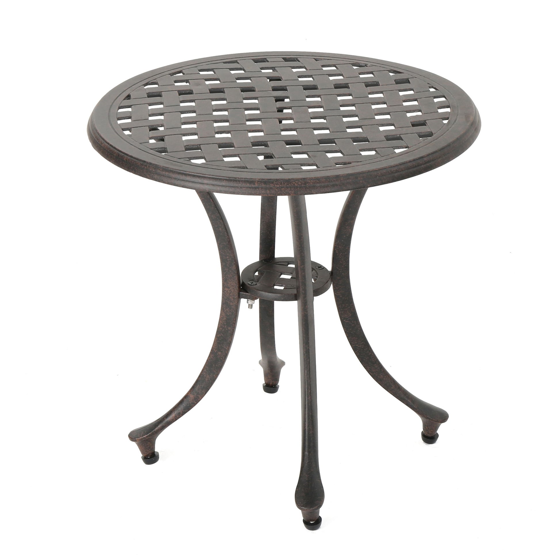 Lunaire - Outdoor Round Cast Aluminum Side Table With Lattice Top And Curved Legs - Bronze