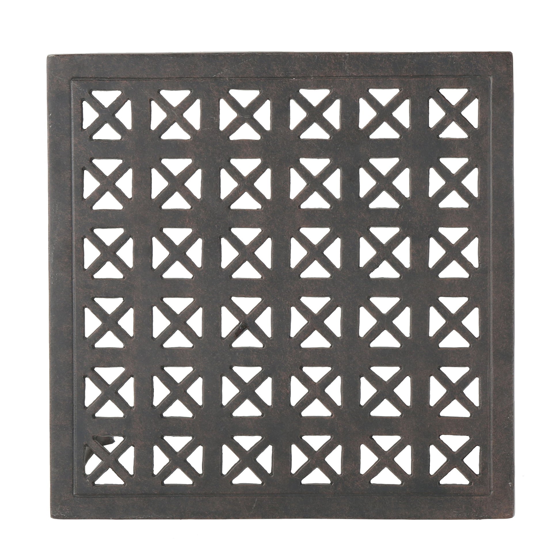 Lunaire - Outdoor Square Cast Aluminum Side Table With Lattice Top And Curved Legs - Bronze