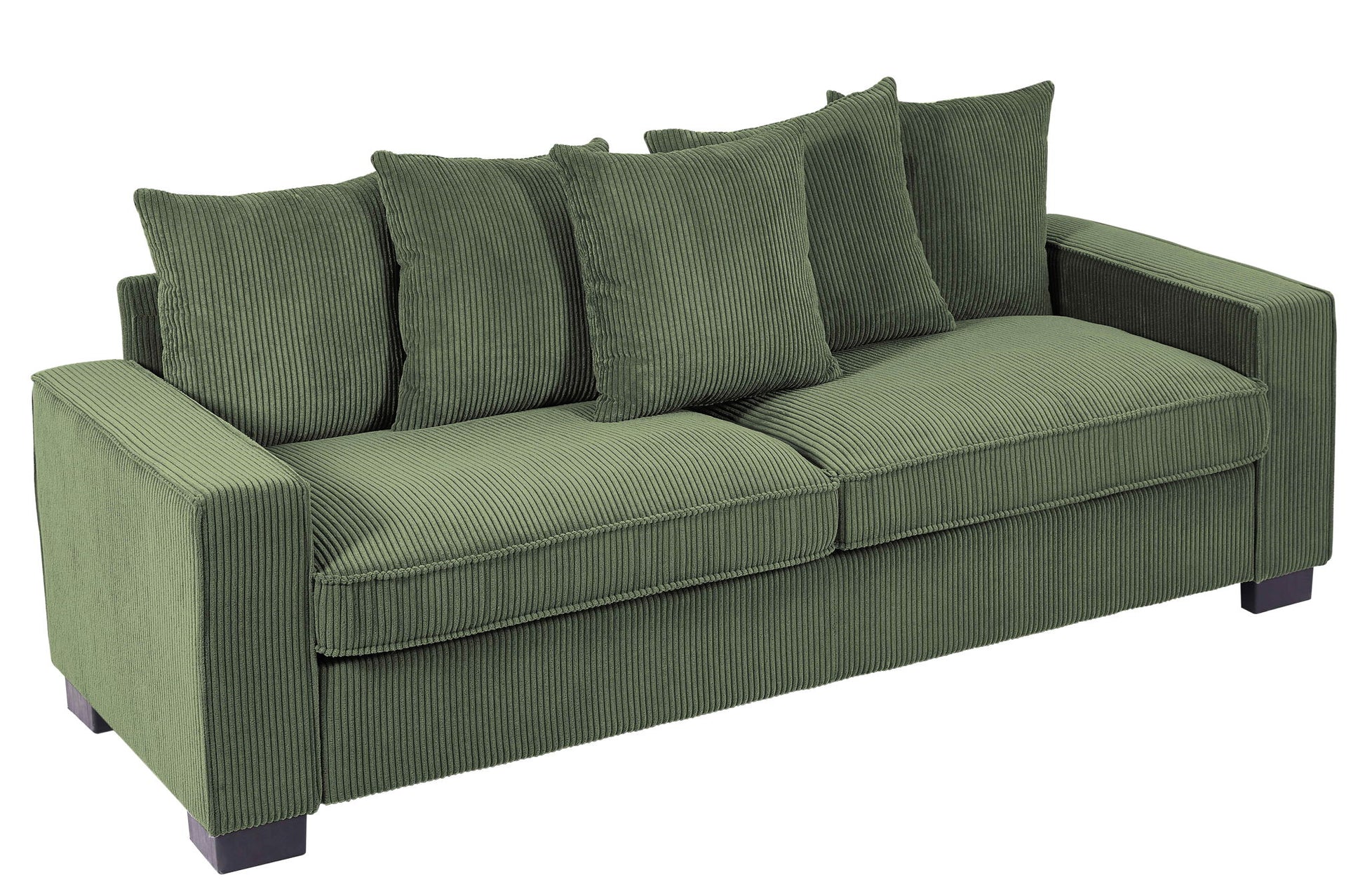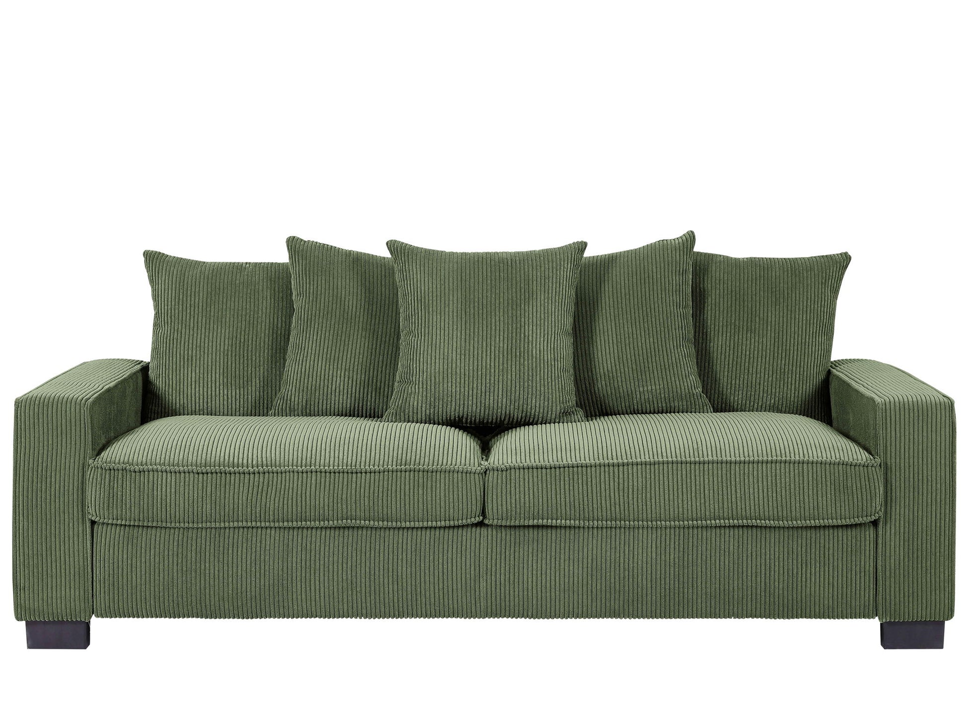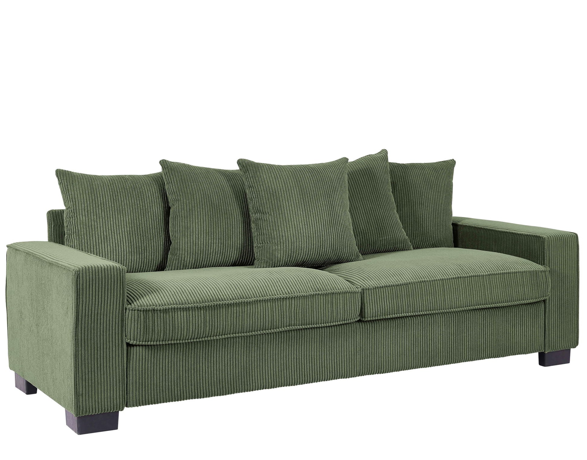 Luxe Corduroy Sofa With 5 Matching Toss Pillows, Sleek Design, Spacious And Comfortable 3 Seater Couch - Dark Green