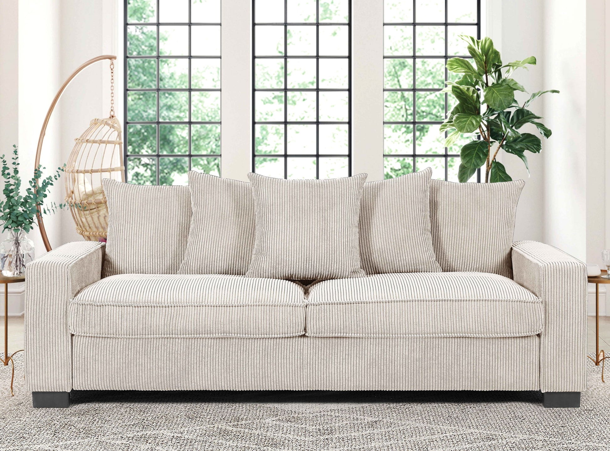 Luxe Corduroy Sofa With 5 Matching Toss Pillows, Sleek Design, Spacious And Comfortable 3 Seater Couch - Ivory