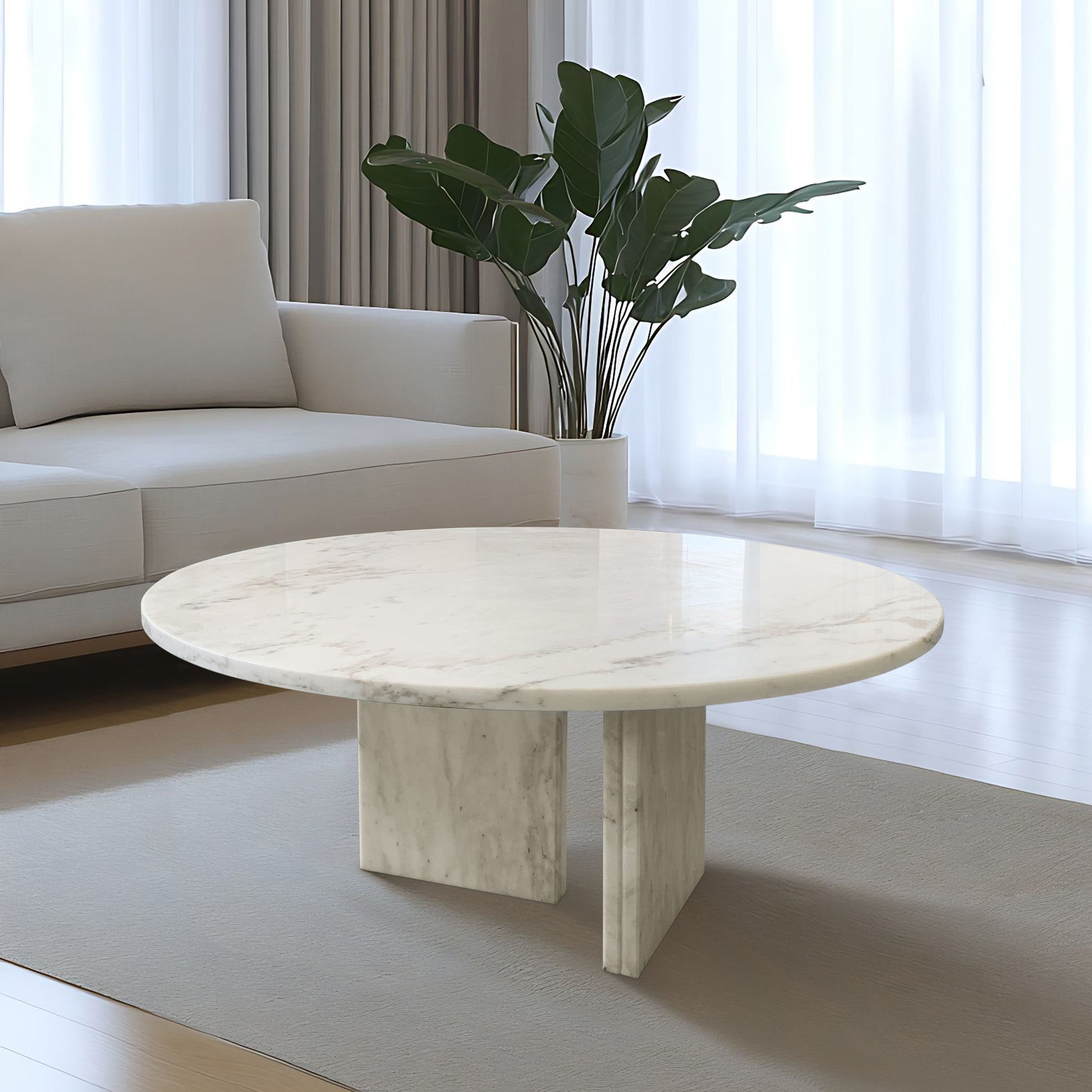 Natural Marble Coffee Table, Snow Mountain, Semi Polished Surface - White