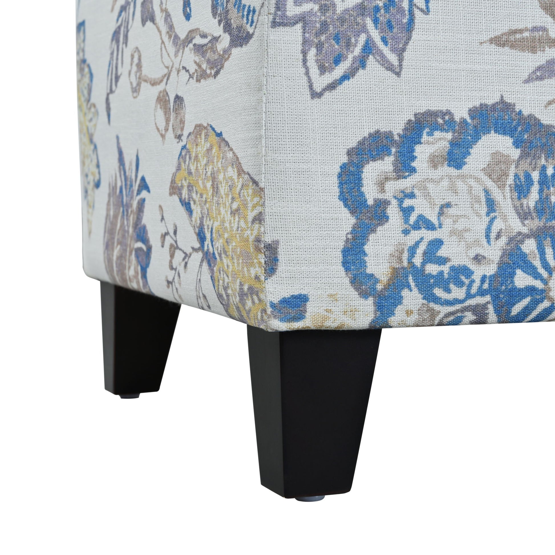 Luxury Storage Ottoman With Floral Patterned Fabric, Soft Close Hinges, Functional Footrest & Seat - Blue Flower / Blue Multi