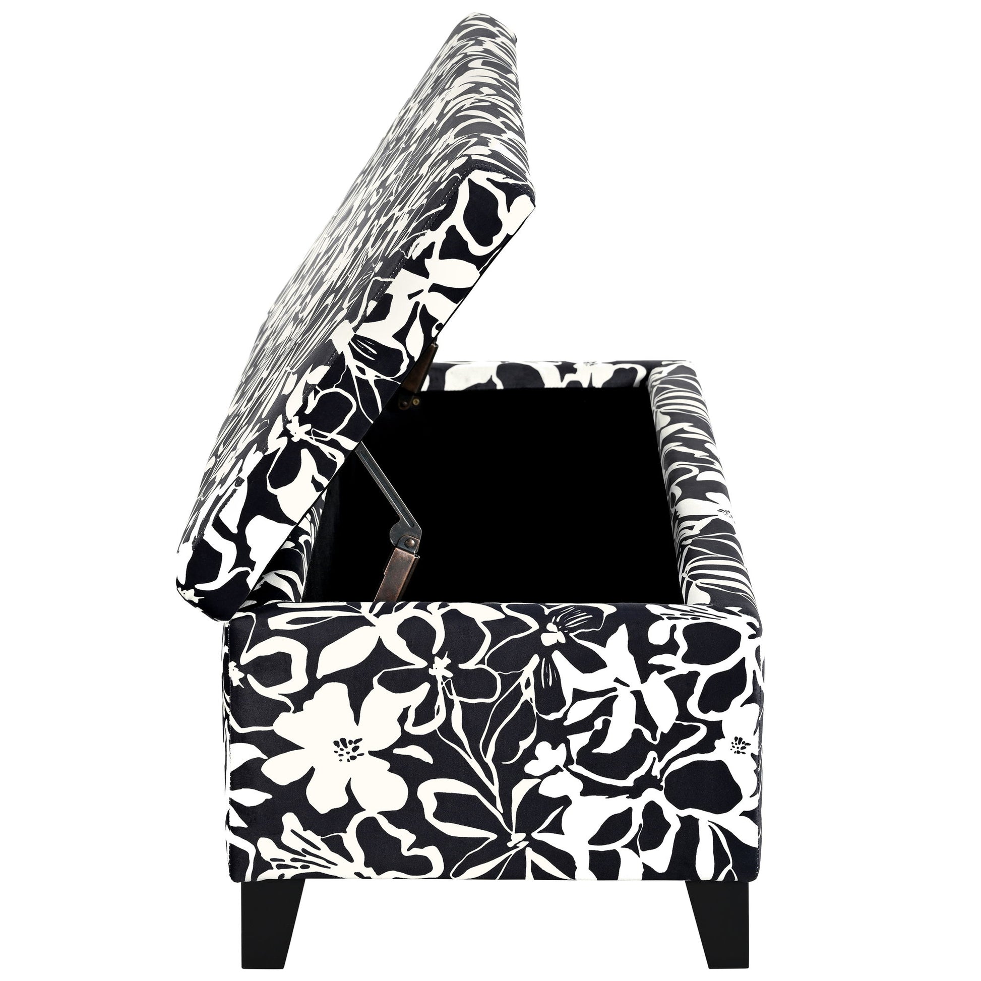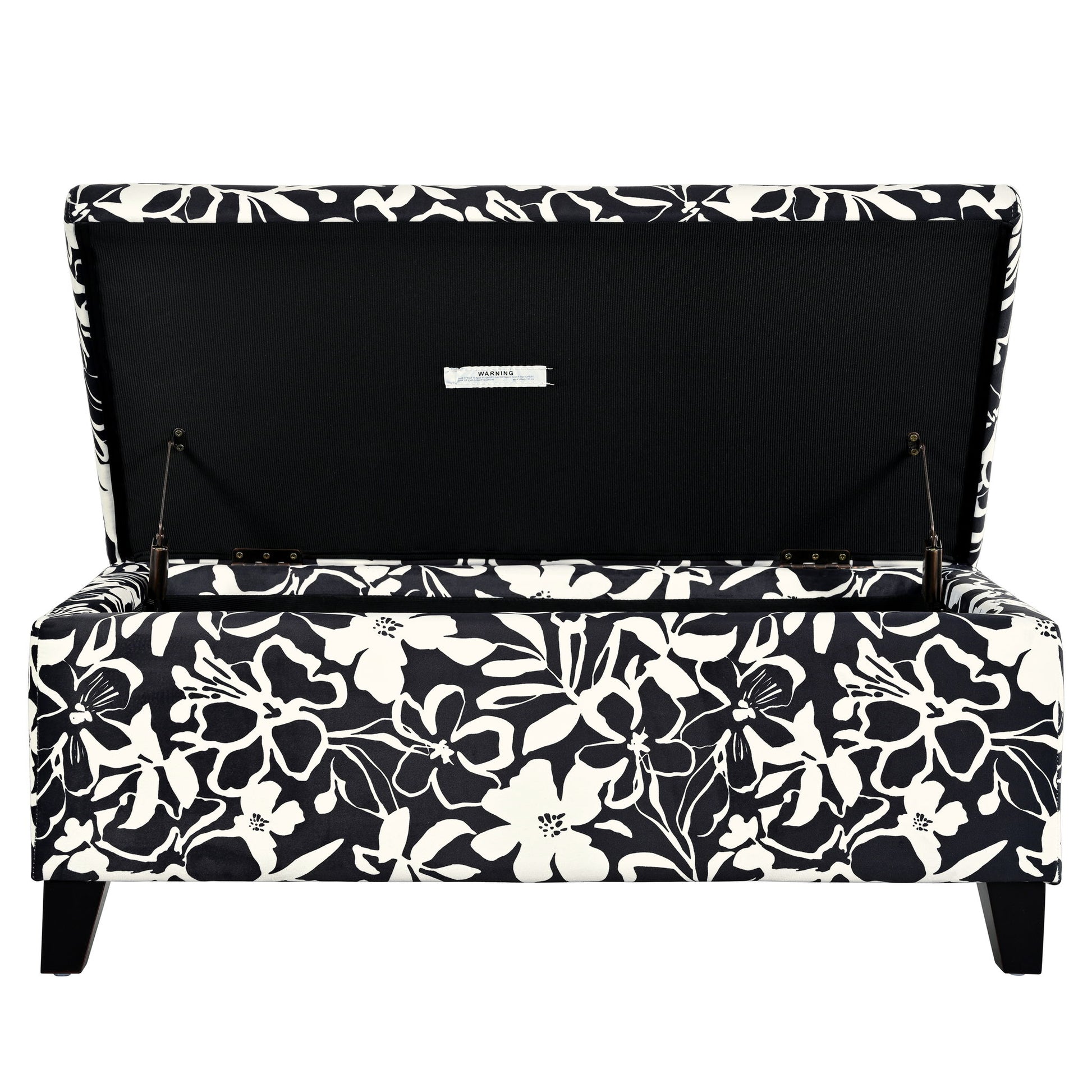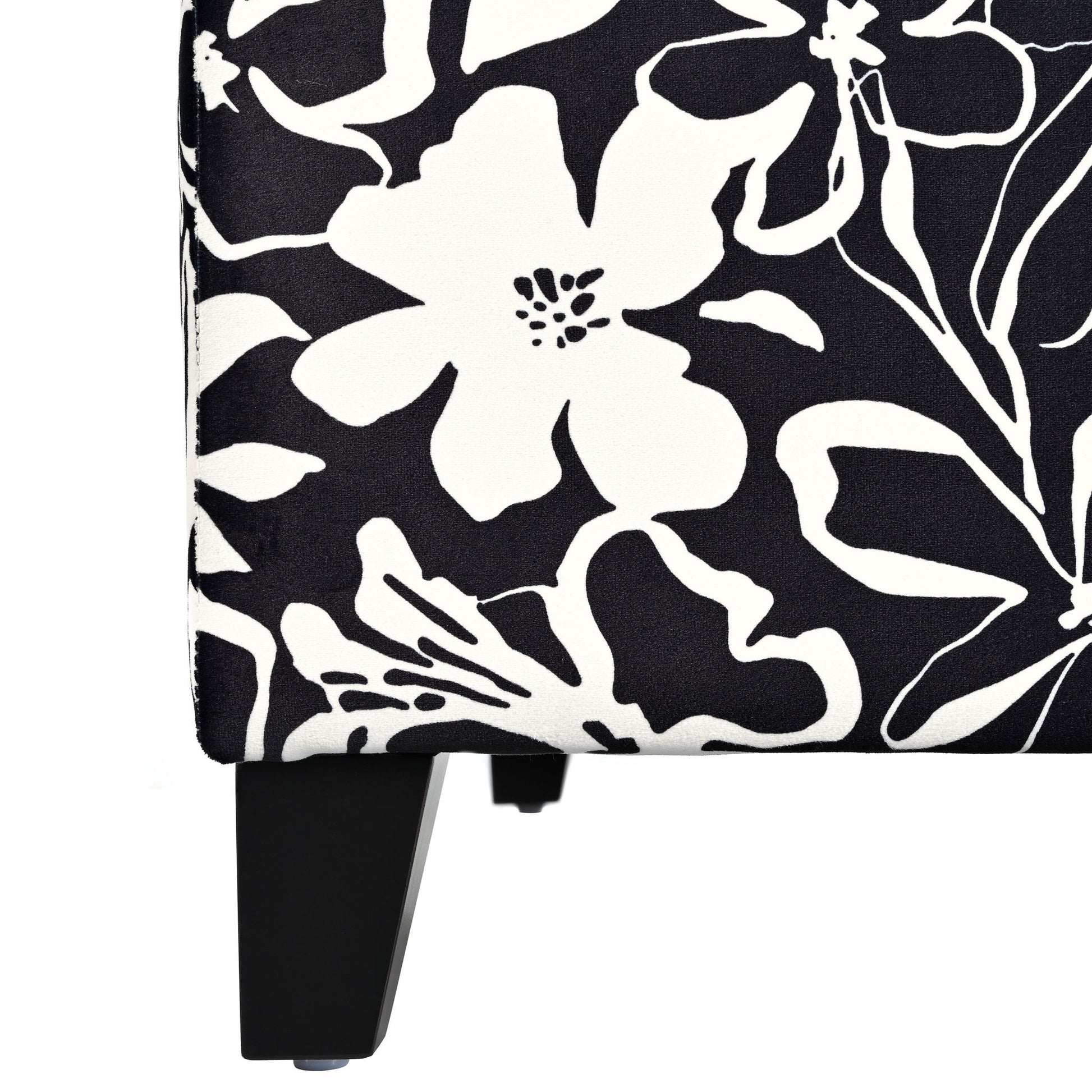 Luxury Storage Ottoman With Floral Patterned Fabric, Soft Close Hinges, Multi Functional Footrest & Seat - Black Floral / White