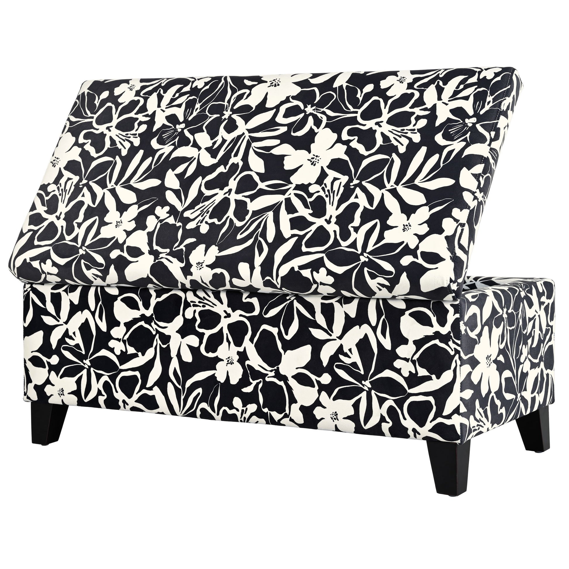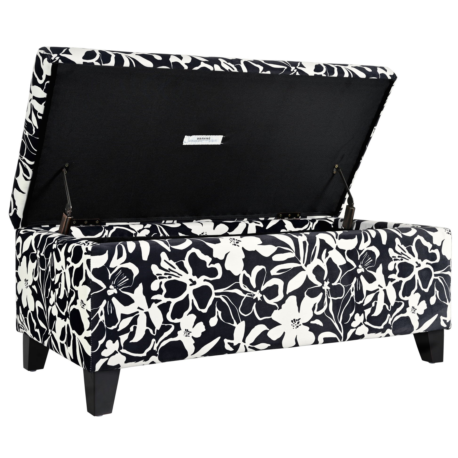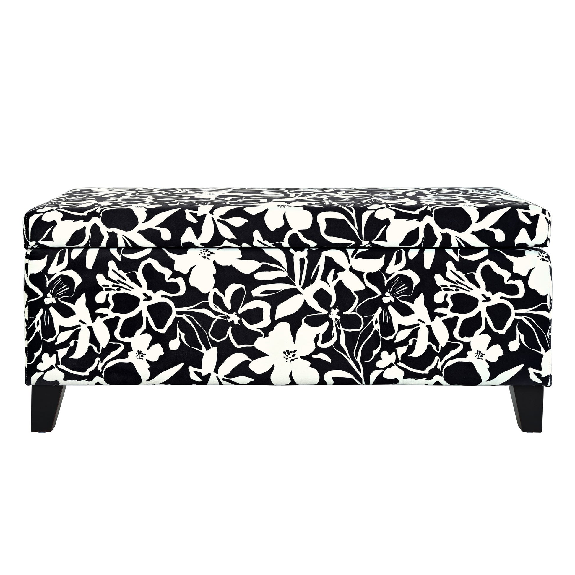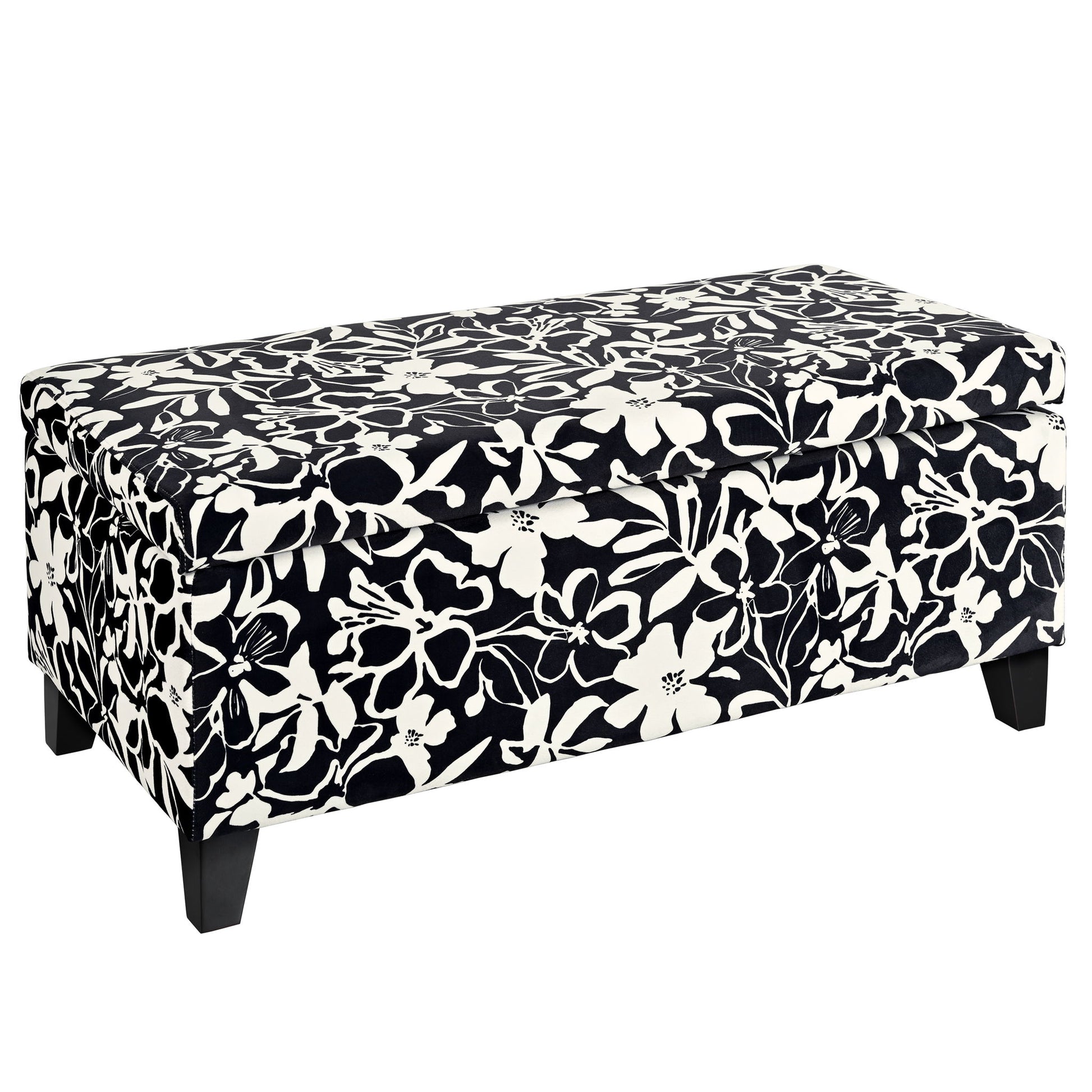 Luxury Storage Ottoman With Floral Patterned Fabric, Soft Close Hinges, Multi Functional Footrest & Seat - Black Floral / White