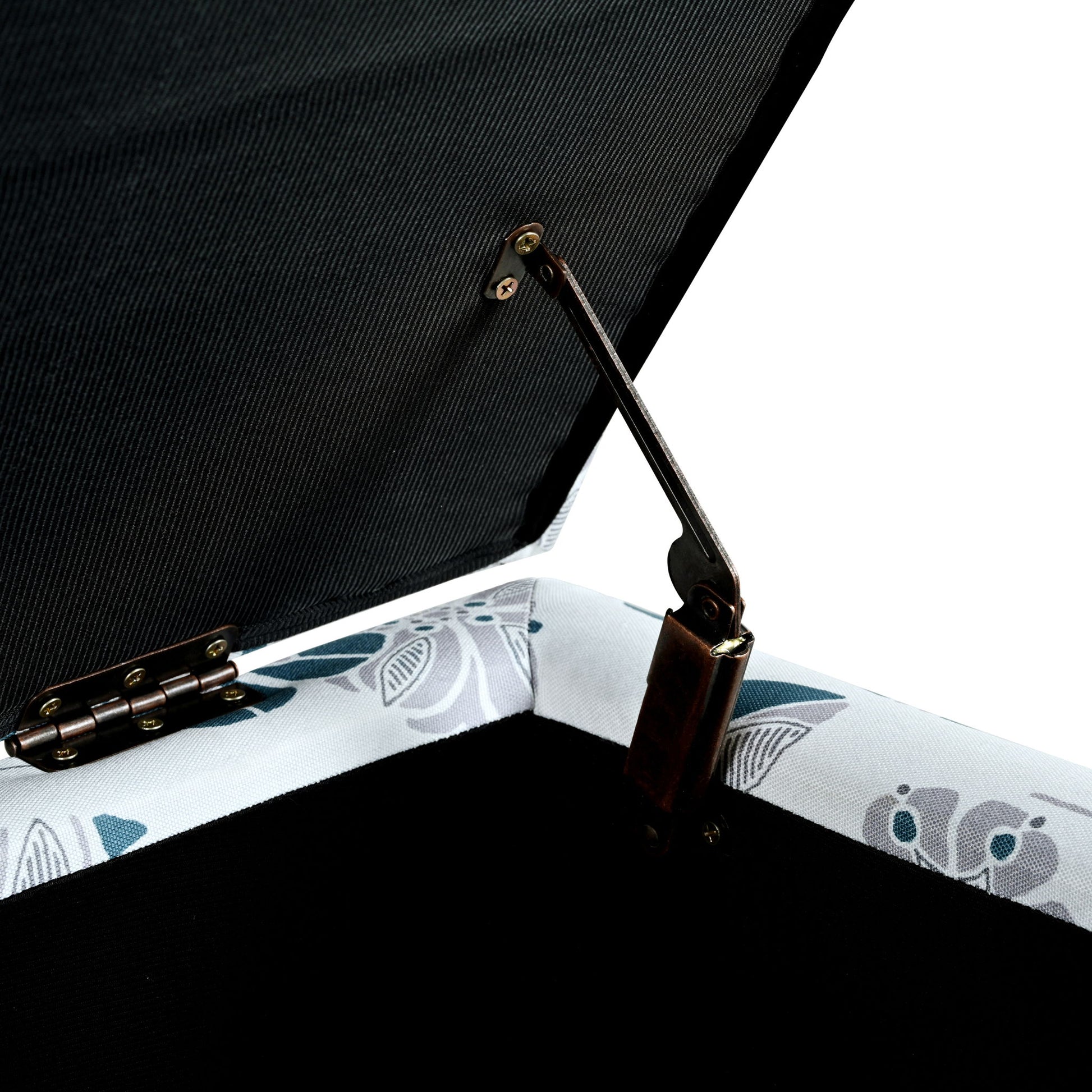 Luxury Storage Ottoman With Floral Patterned Fabric, Soft-Close Hinges, Multi Functional