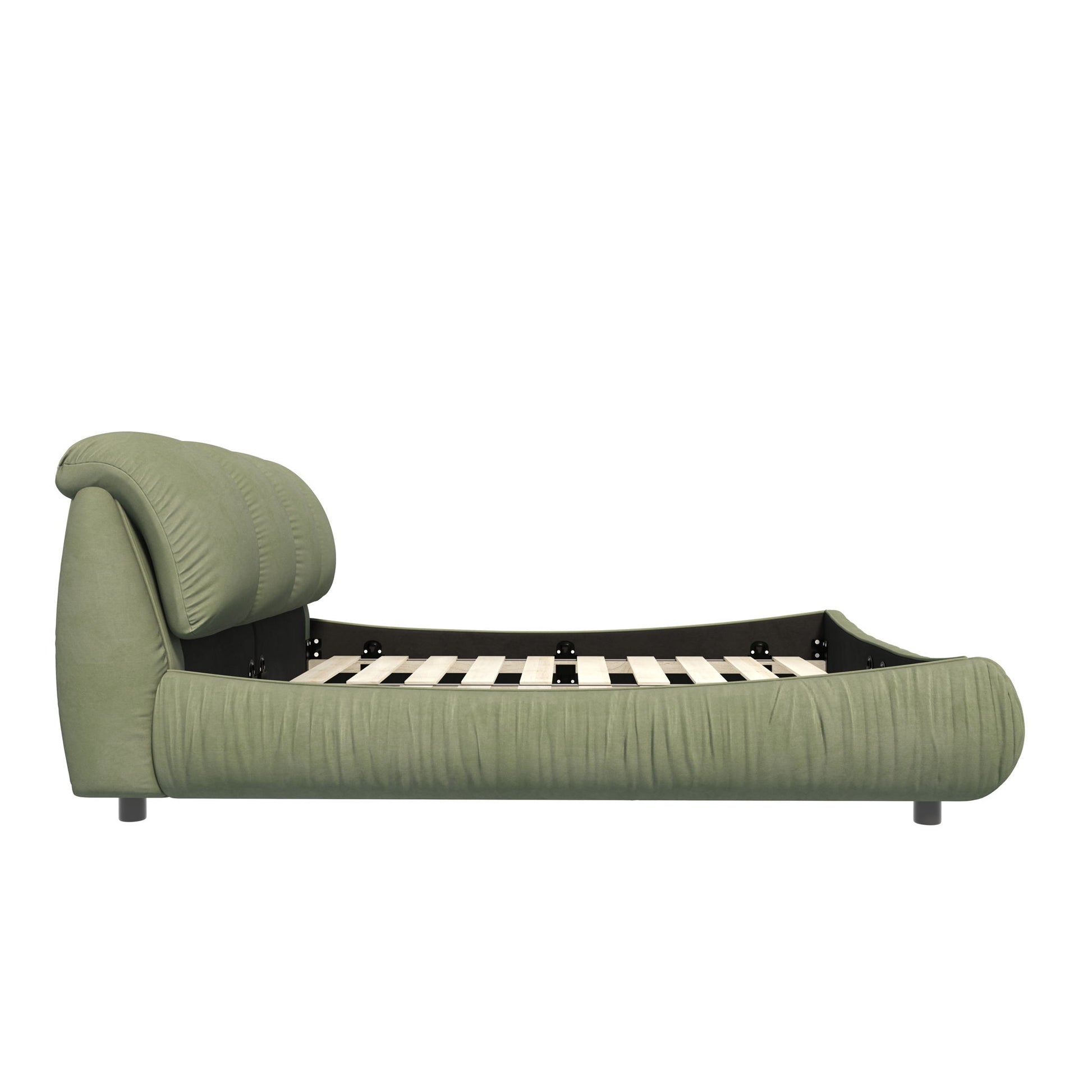 King Size Luxury Upholstered Platform Bed With Oversized Padded Backrest And Solid Wood Frame, Suitable For Multiple Heights Of Mattresses - Green