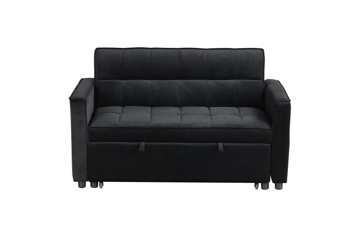 Maeve 53.5"W Black Velvet Convertible Sleeper Loveseat with Tufting and Side Pockets