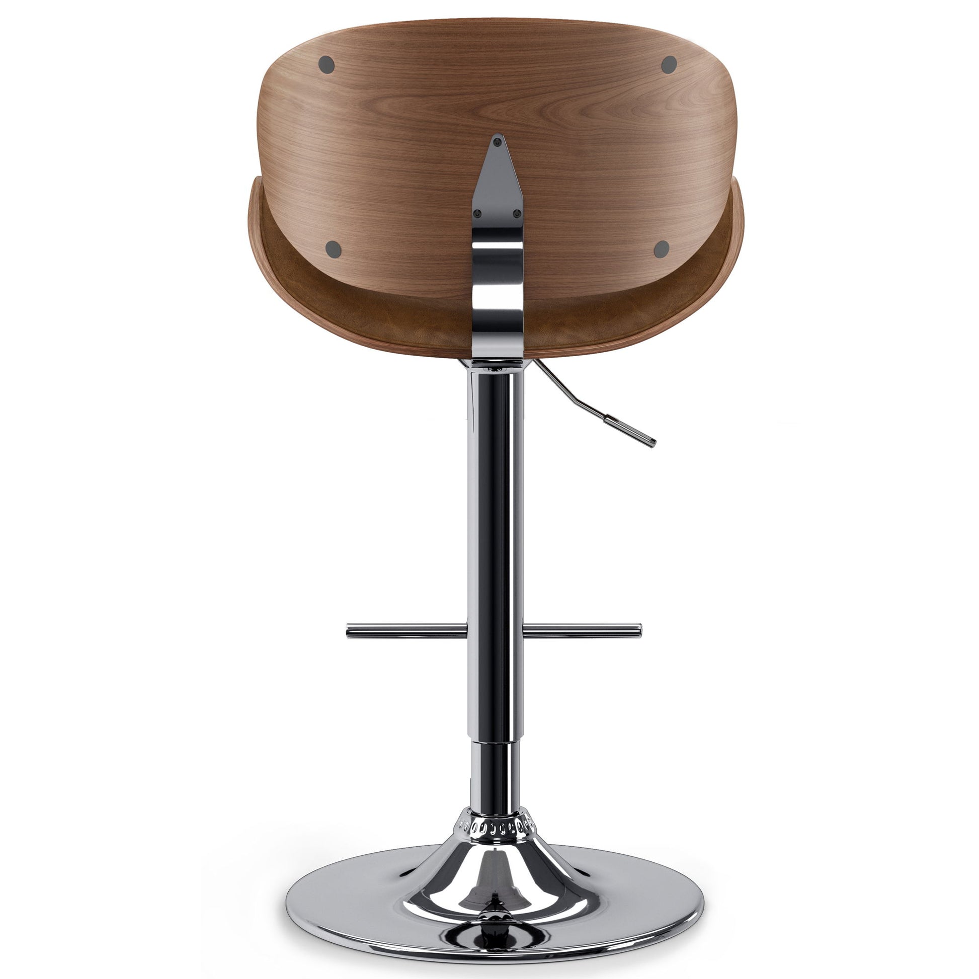 - Features sturdy polished chrome base with 360 degree swivel and footrest. Seat Adjusts from bar to counter height with gas lift