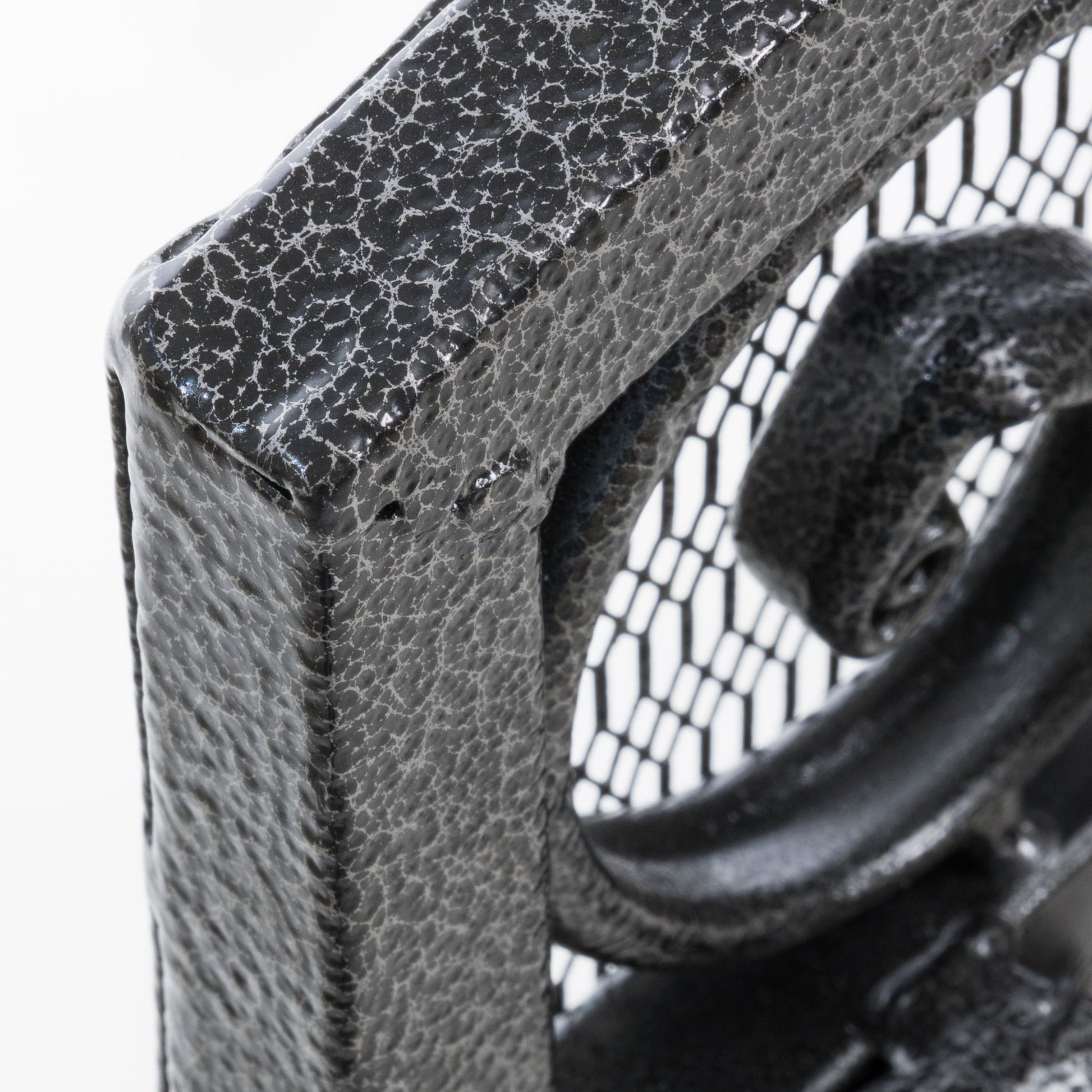 - IRON FRAME: Constructed of iron, the frame of this fireplace screen is made to be incredibly durable. It is finished with a matte color and metallic accents, giving this accessory a polished look.