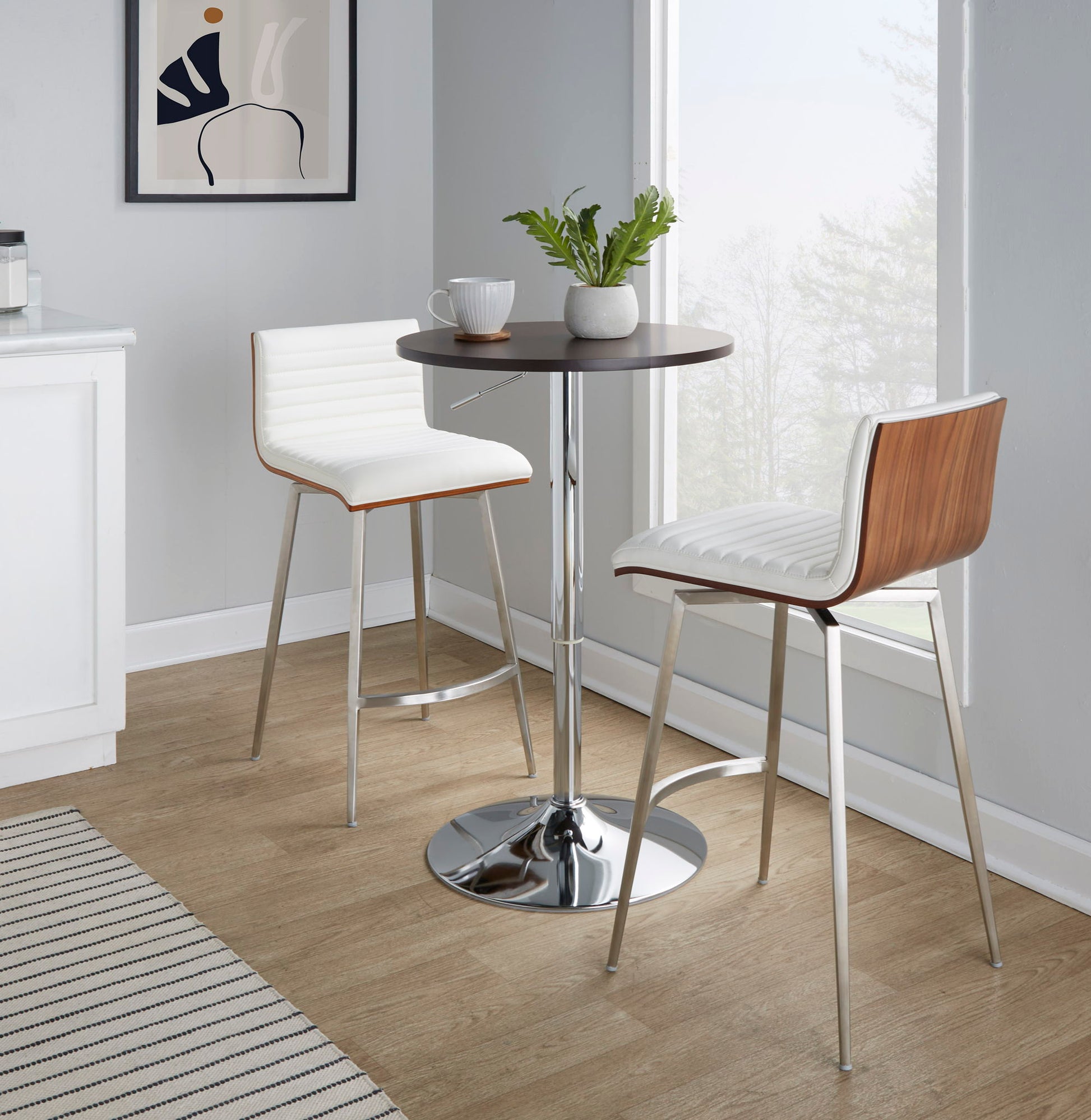 Mason - 3 Piece Swivel Mid-Century Modern Counter Height Dining Set With Adjustable Table - Chrome / Brown / White