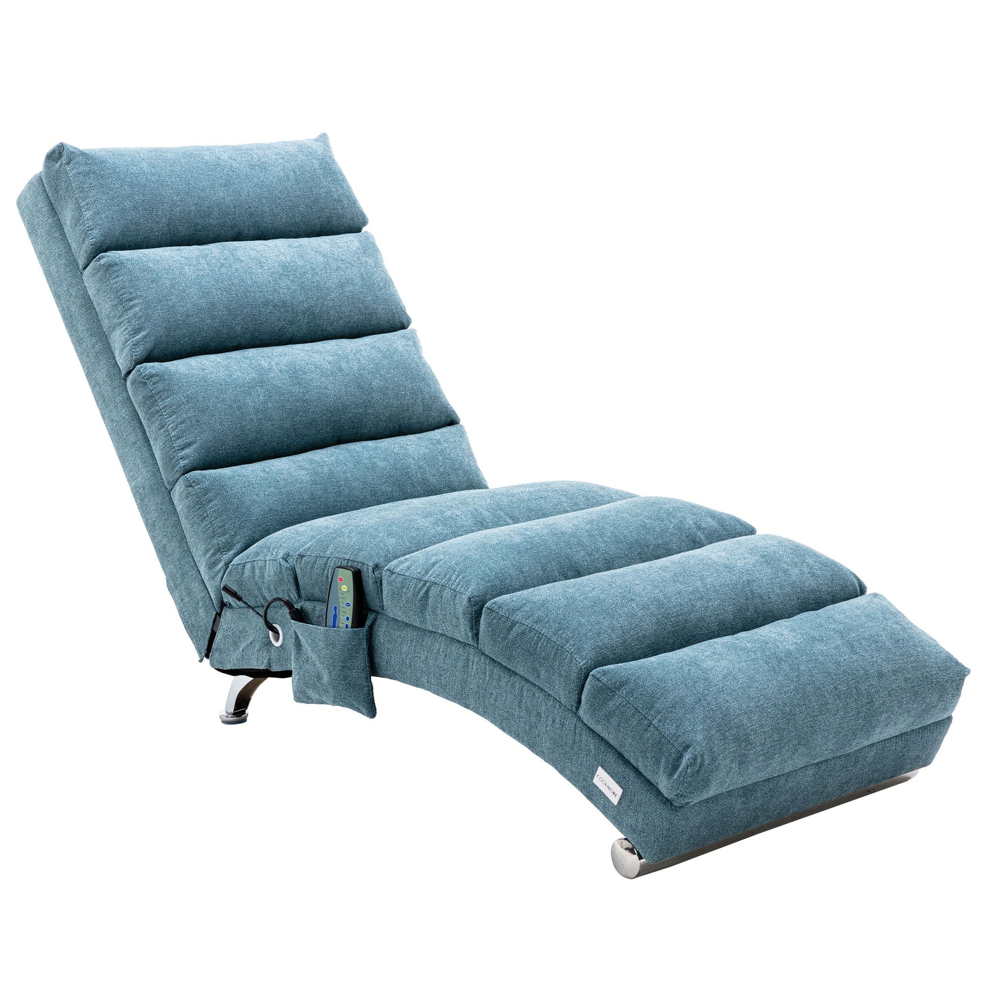 Ergonomic Linen Massage Chaise Lounge With Remote Control, 5 Modes - Blue