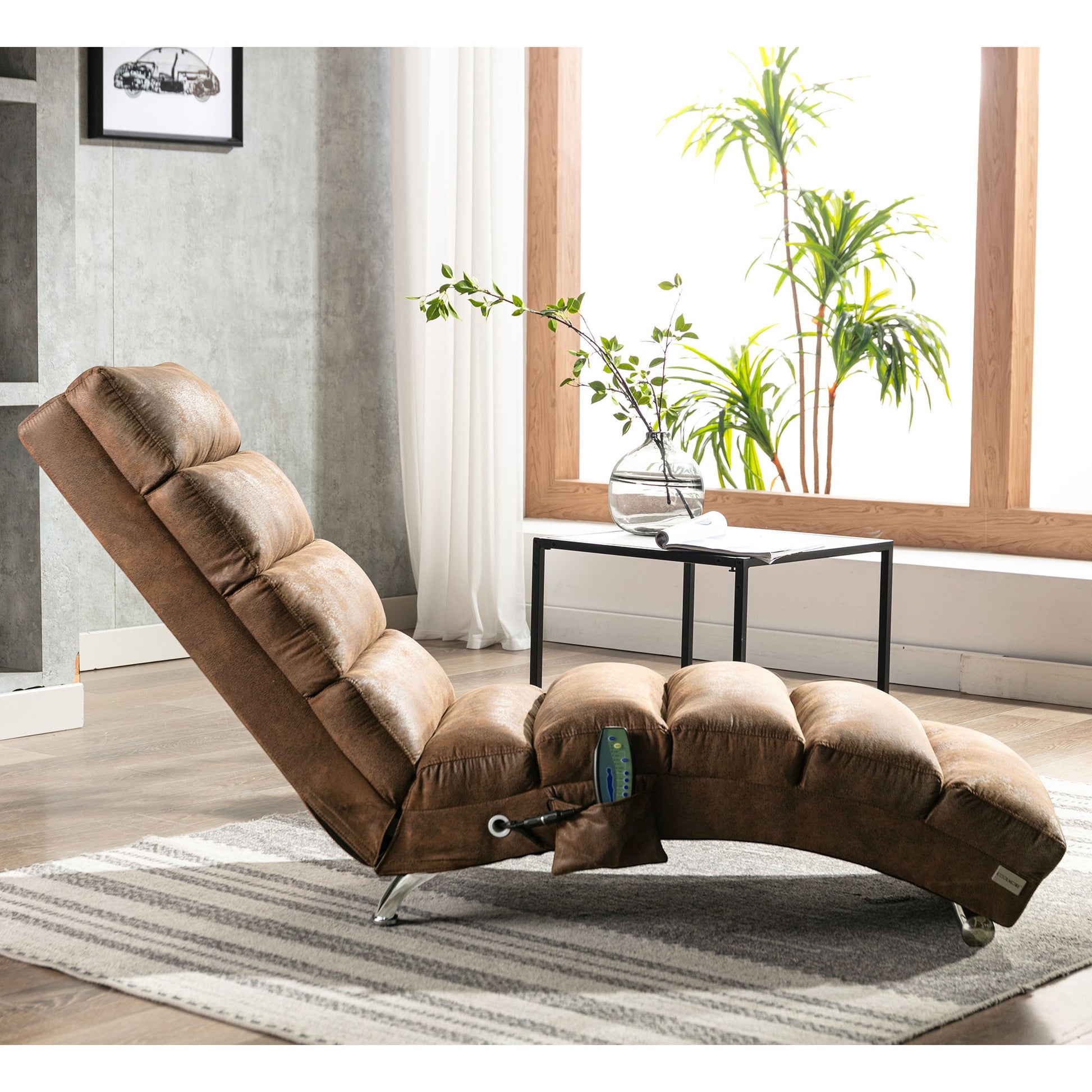 Linen Massage Chaise Lounge Indoor With Remote Control, Ergonomic Electric Massage Long Lounger - Coffee