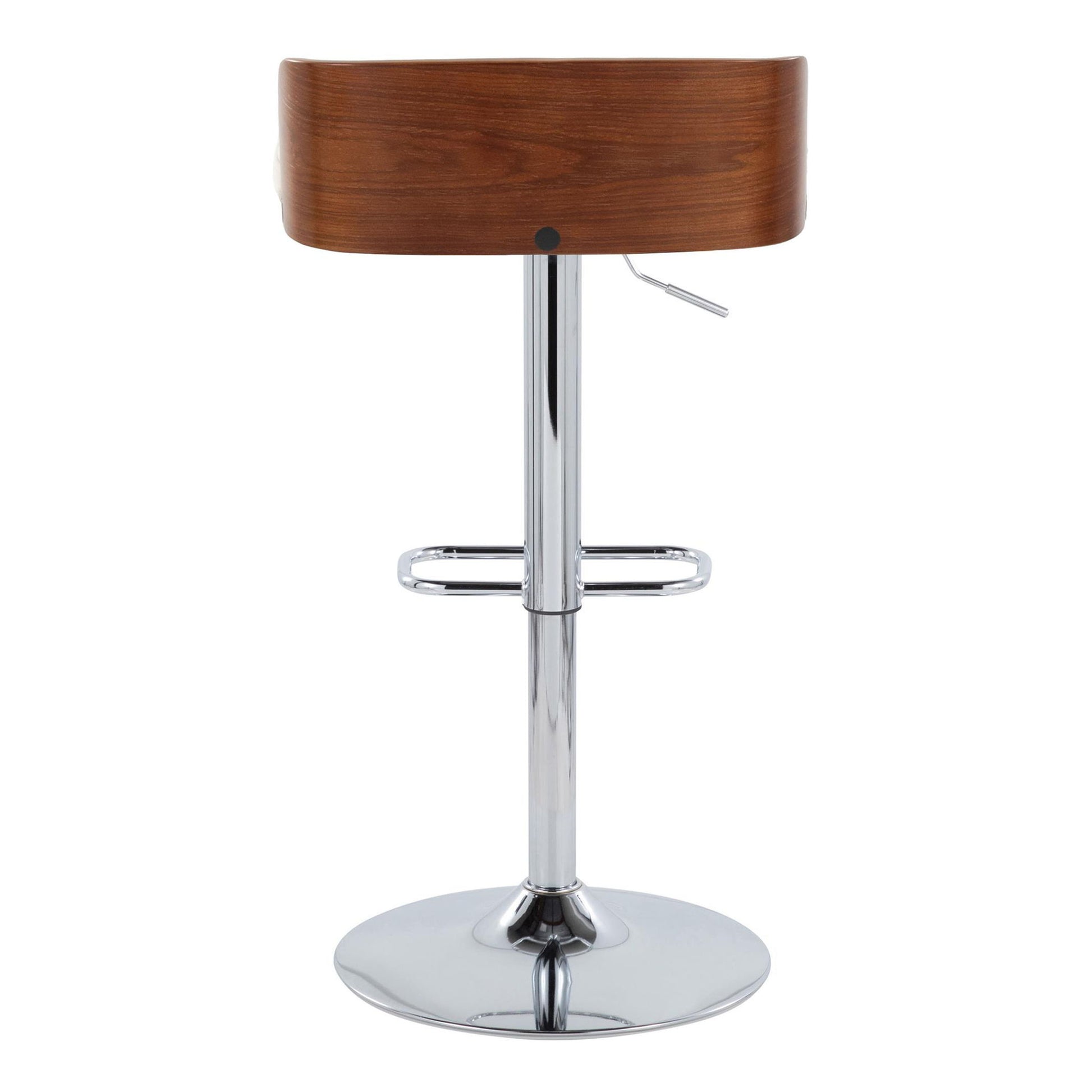 Maya - Mid-Century Modern Adjustable Barstool With Swivel With Rounded Rectangle Footrest (Set of 2) - Chrome / Walnut / Cream