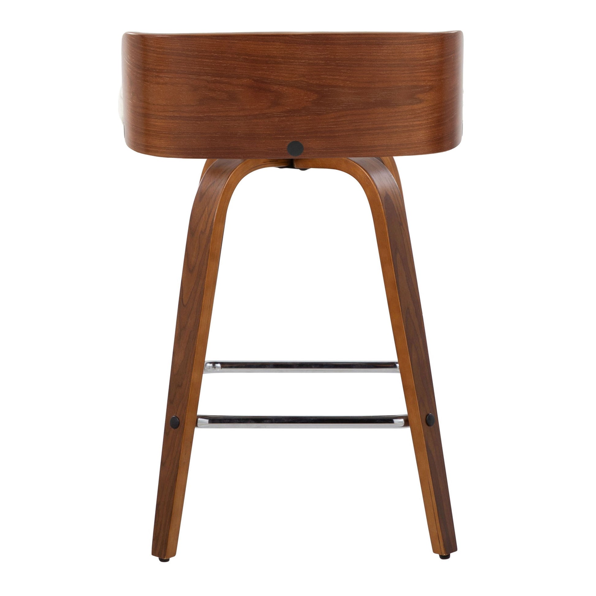 Maya - Mid-Century Modern Fixed Height Counter Stool & Swivel And Square Footrest (Set of 2) - Walnut / Cream
