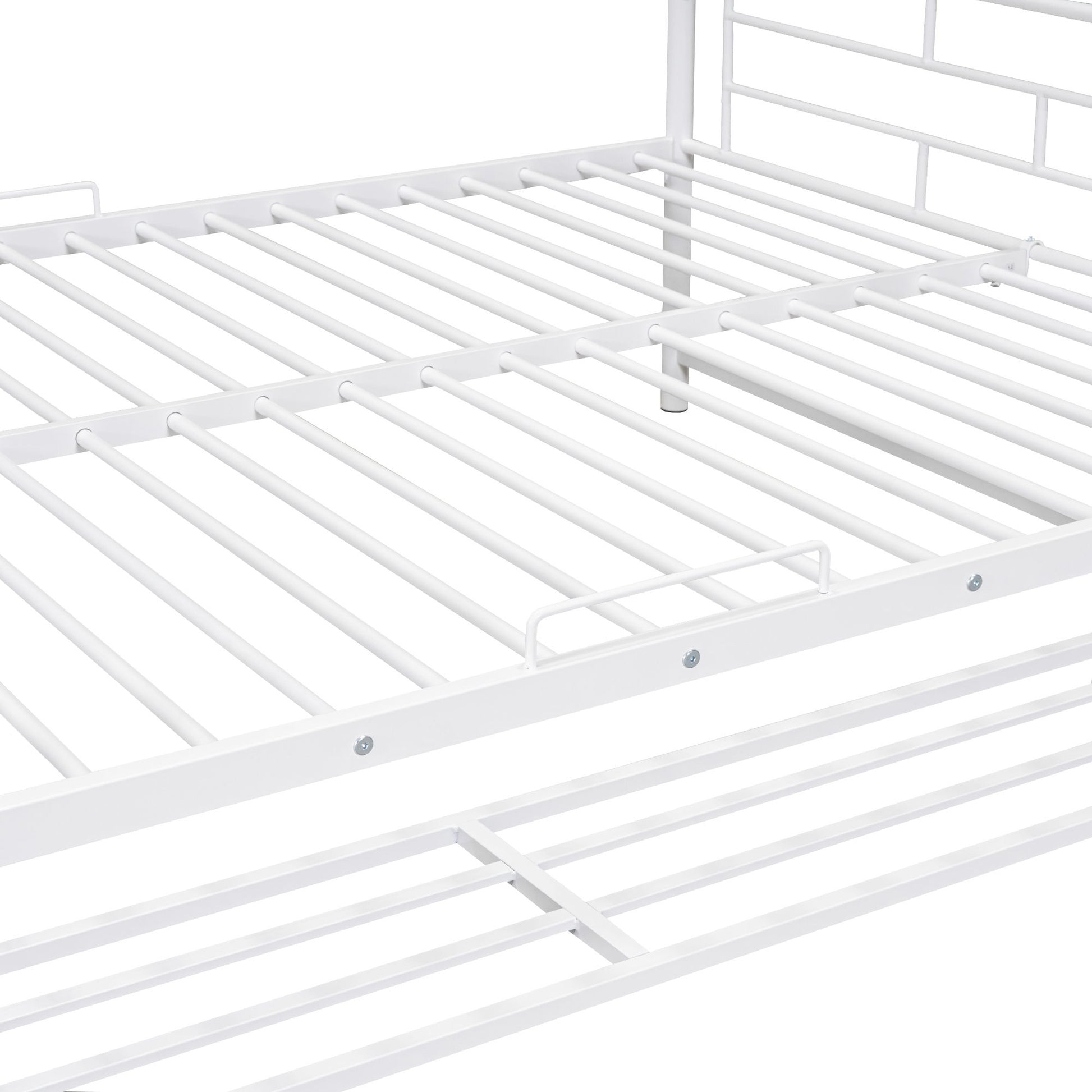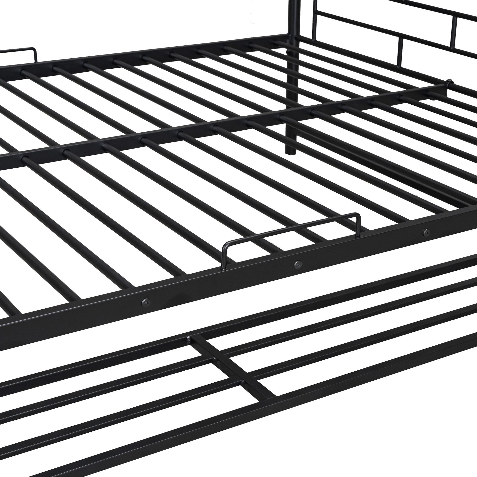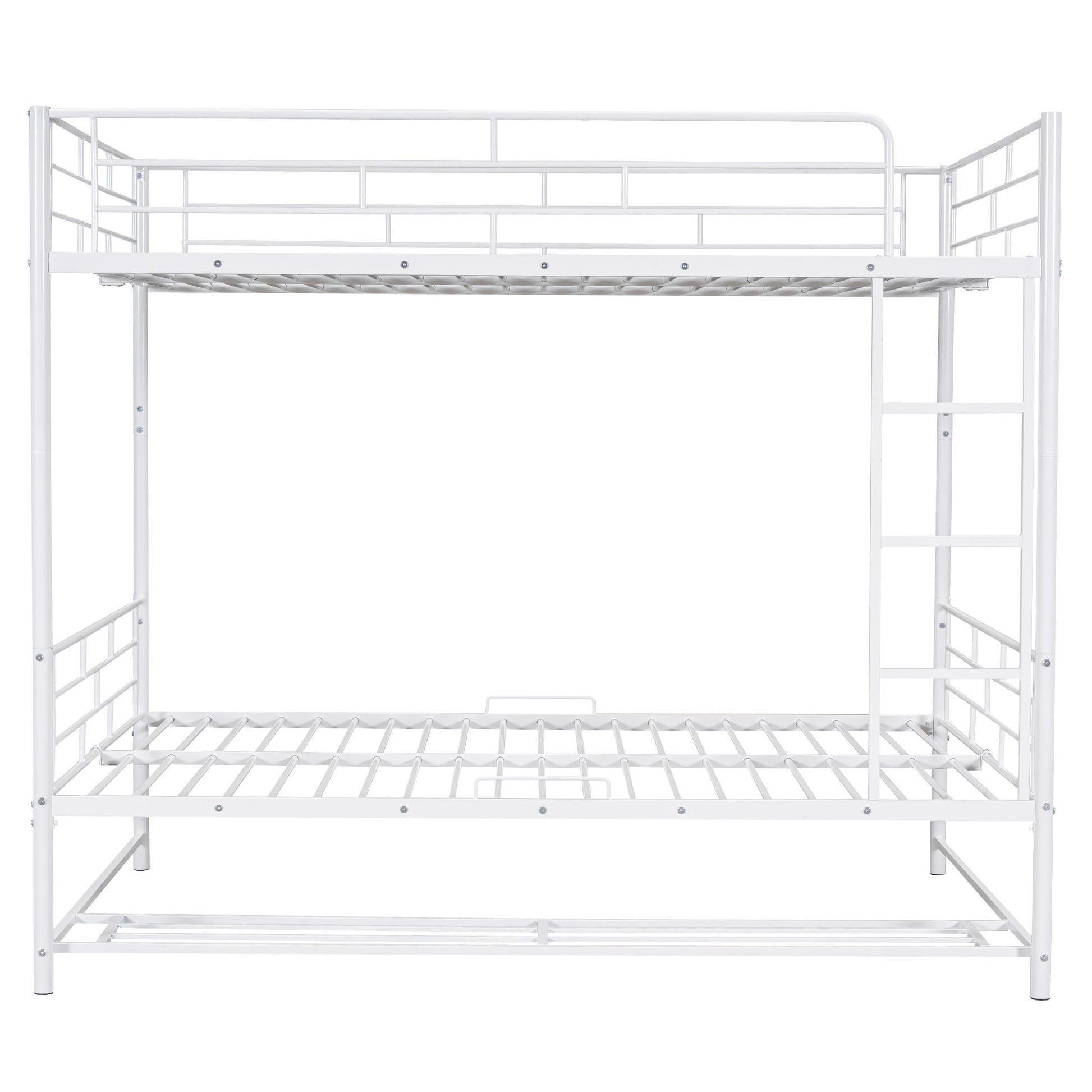 This metal bunk bed is made with sturdy metal and has a clean-cut silhouette that can be matched with any room decor. Designed with safety in mind, this bunk bed comes with a ladder integrated into the frame that is easy to climb up and down. With a practical design, this versatile bunk bed can be separated into two beds to meet your different needs.The shelf underneath the bunk bed creates extra space for you to stock shoes, boxes, toys or any small items you like. Some assembly is required, and the bed will definitely be assembled conveniently.