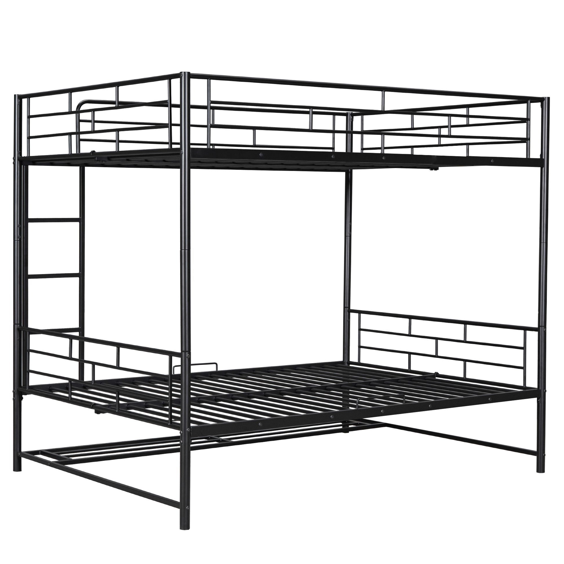 Full Over Full Bunk Bed With Shelf And Guardrails - Black