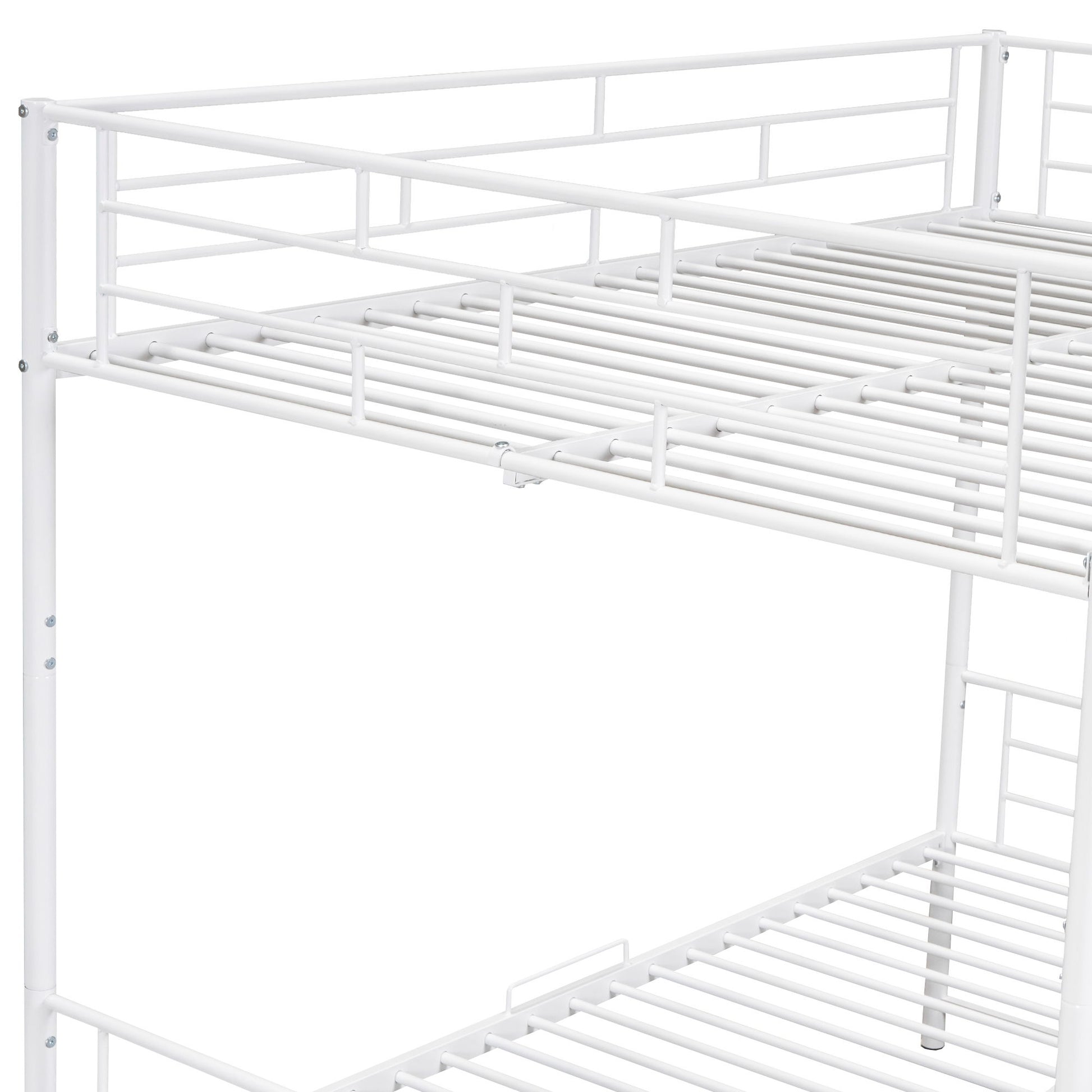 Full Over Full Bunk Bed With Shelf And Guardrails - White