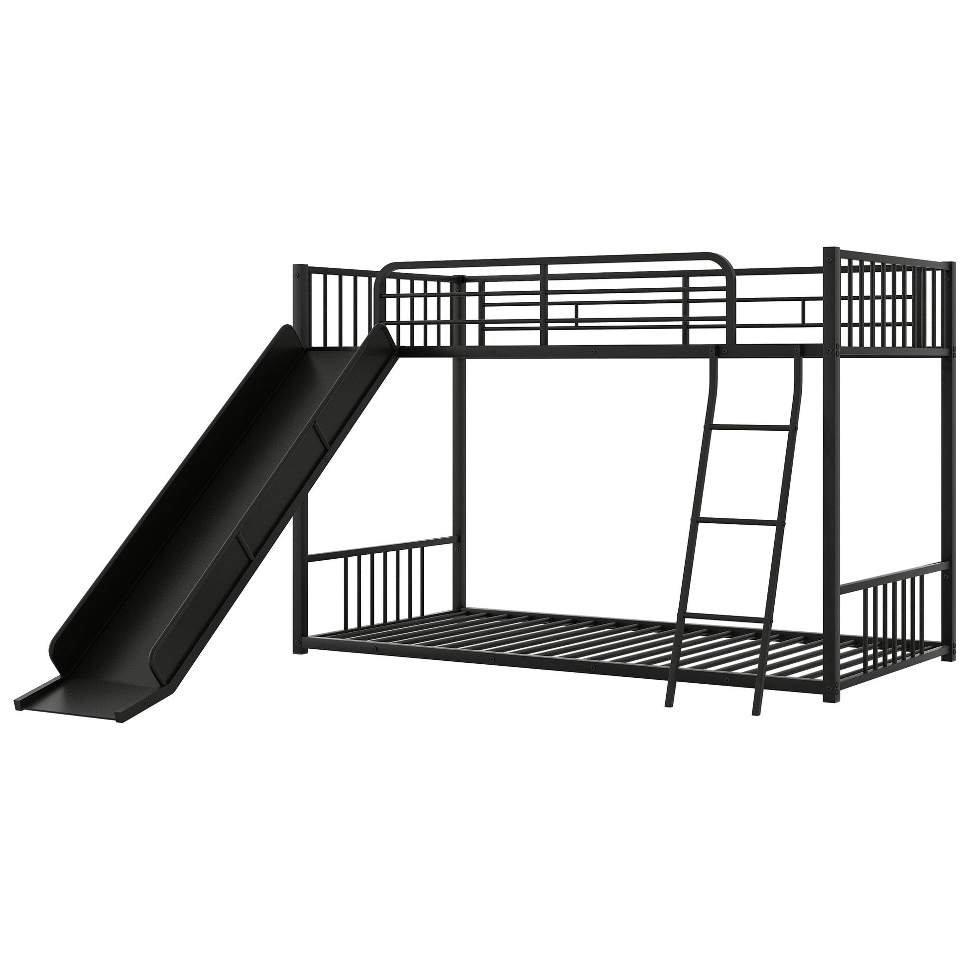 Twin Over Twin Bunk Bed With Slide, Durable Frame, Compact Design - Black