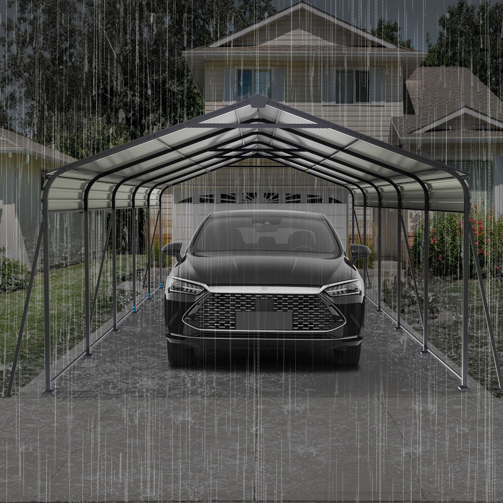 Metal Carport 13 X 26.5 Ft Heavy Duty With Galvanized Steel Roof Metal Garage Canopy With Galvanized Steel Roof & Frame Car Tent Outdoor Storage Shed For Car Boats And Truck - Gray
