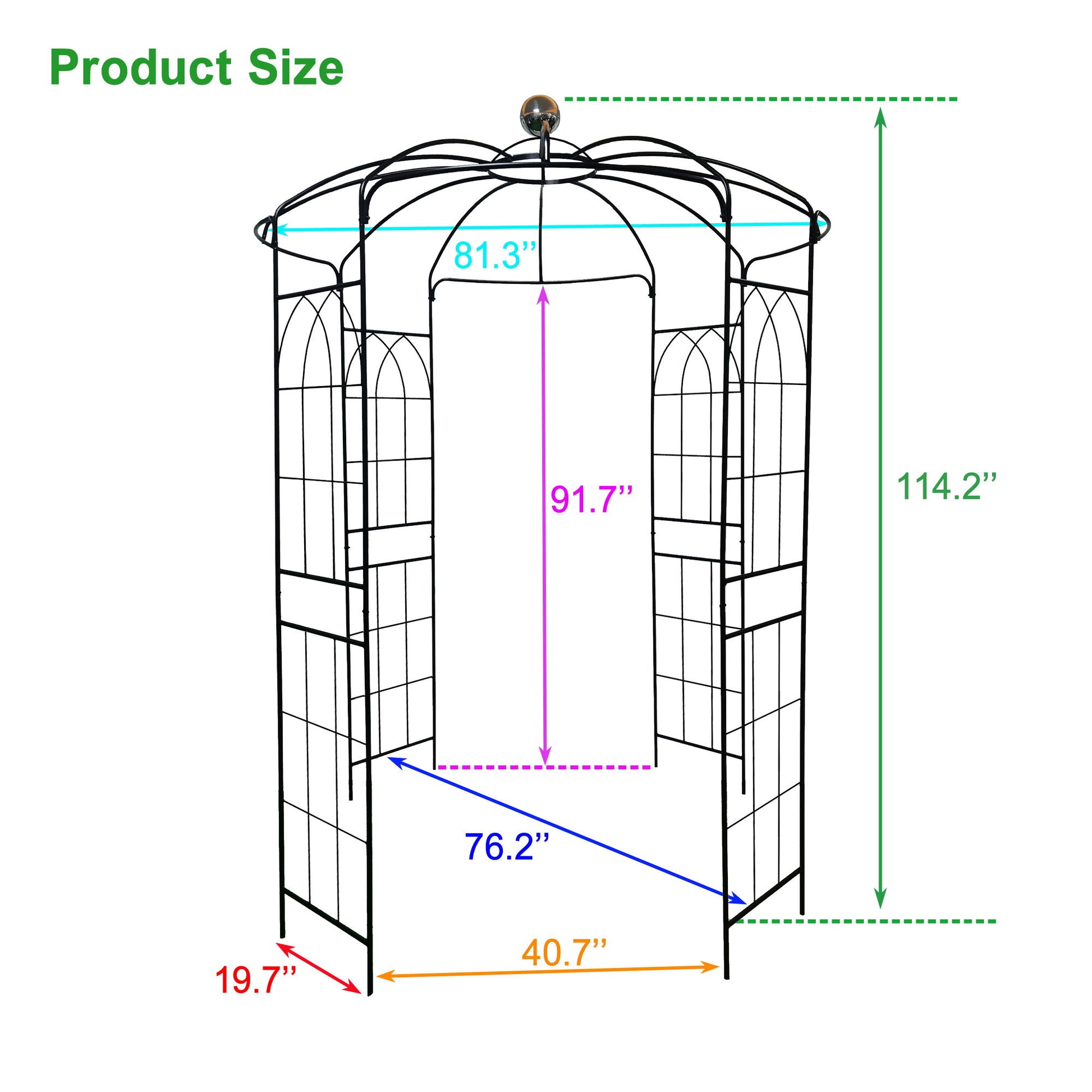- Dimensions: Overall dimensions are 6.8ft in diameter and 9.5ft in height, with a gate size of 3.4ft in width and 7.6ft in height. Suitable for events like weddings.