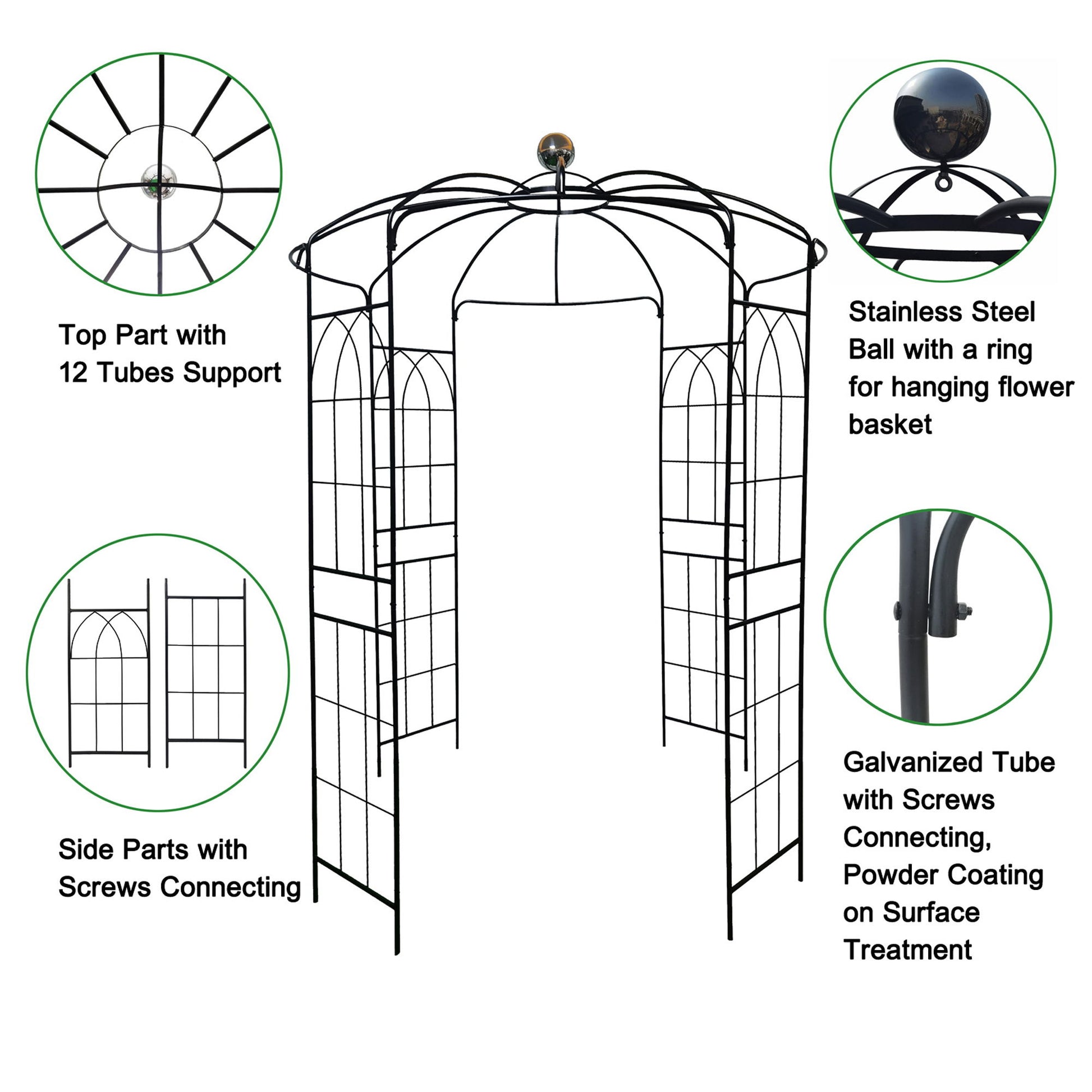 Metal Garden Arch Iron Garden Arbors Gazebo Dia High Birdcage Shape Pergola Pavilion For Wedding Ceremony Outdoor - Black