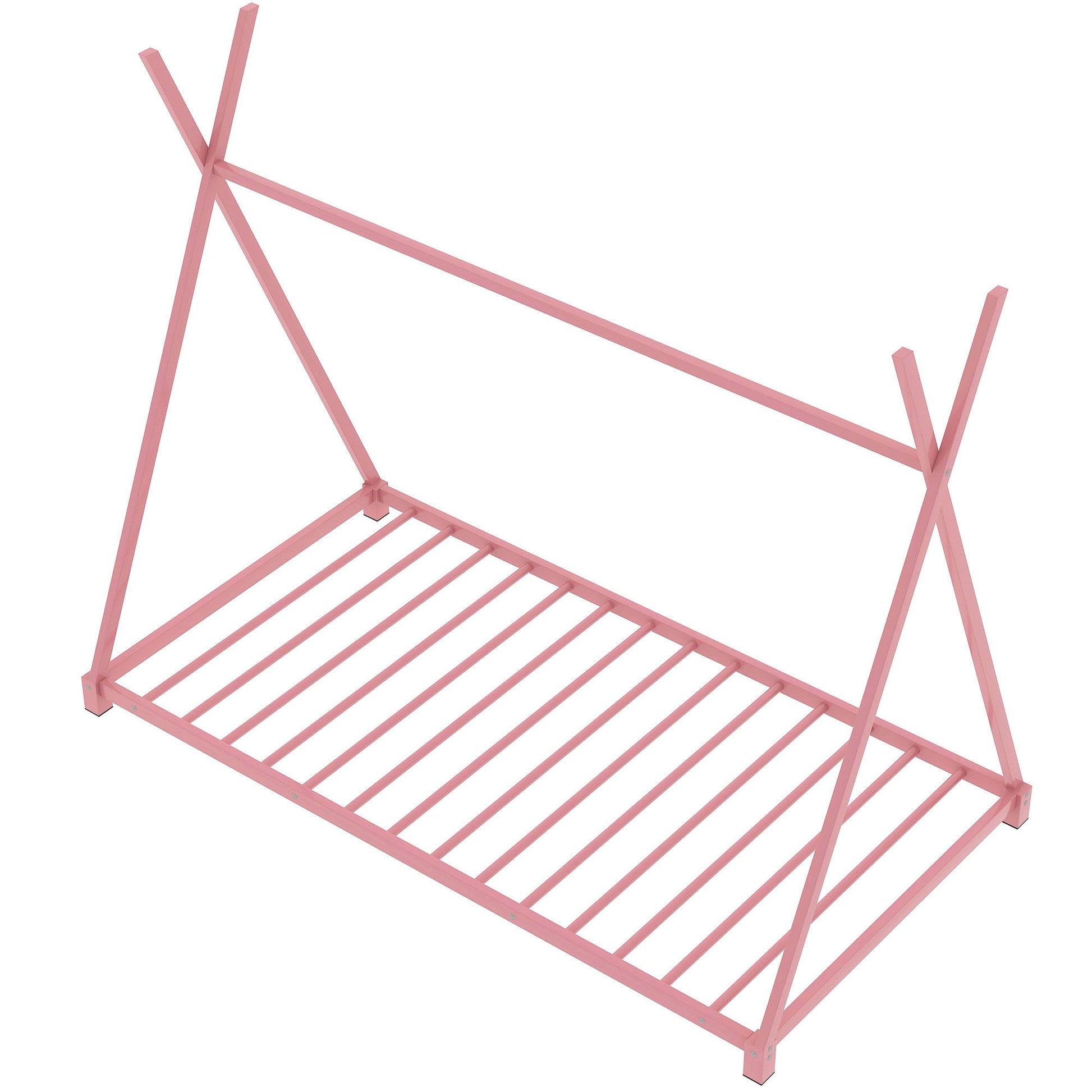 Twin Size House Platform Bed With Triangle Structure, Sturdy Frame, Low Profile Design - Pink