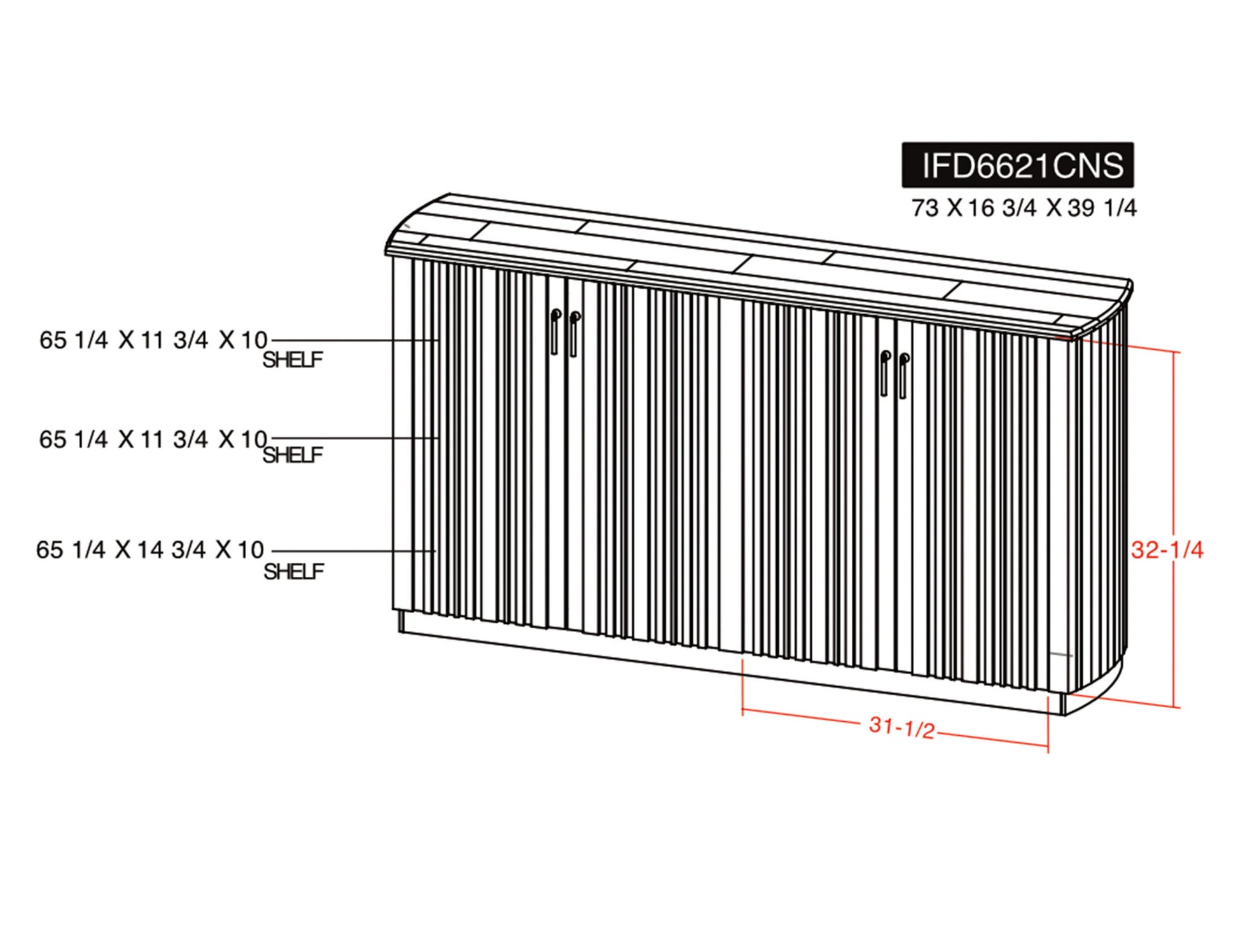 73.0"W x 16.75"D x 39.25"H - 172.0 lb