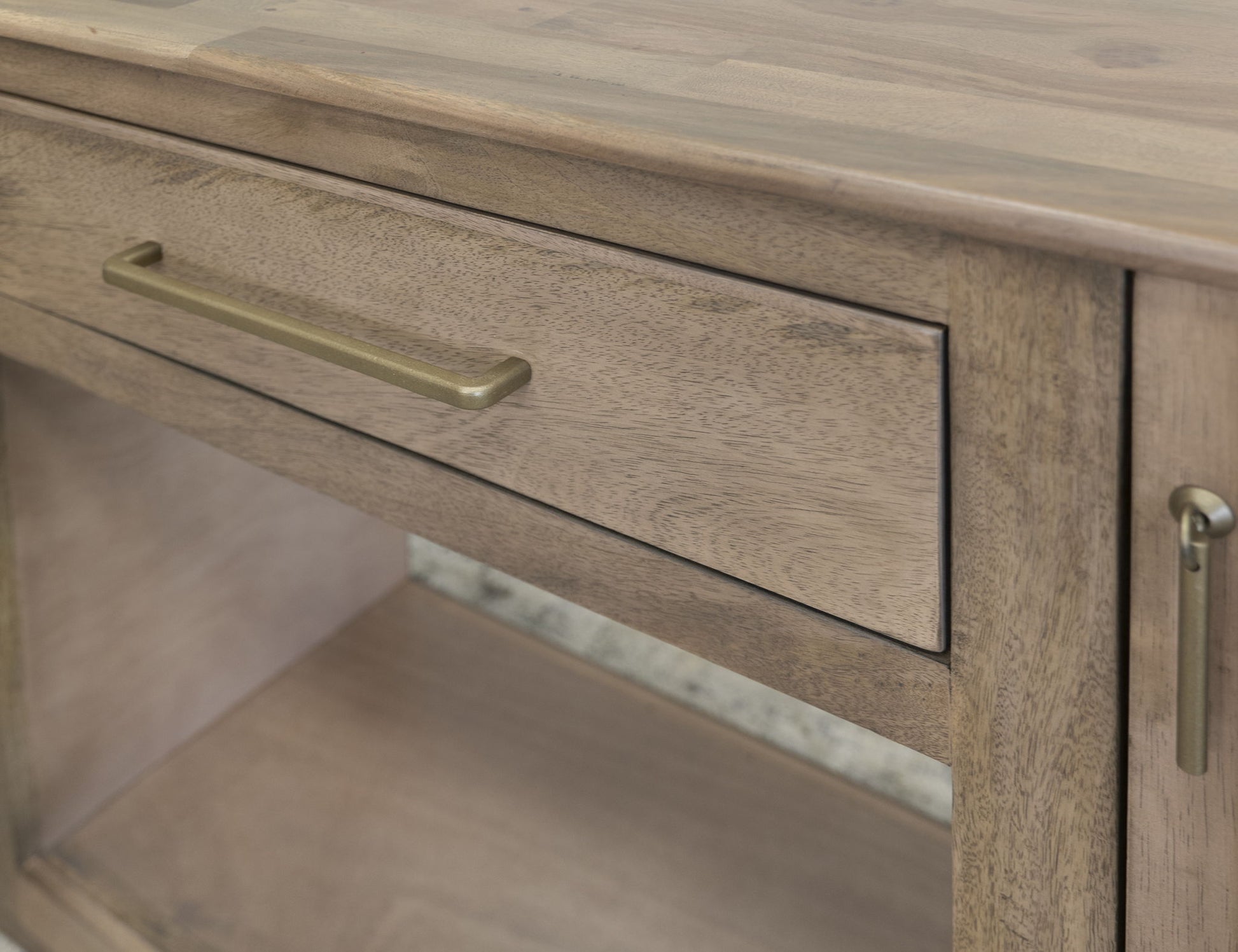 - Finish is achieved through a translucent, multi-step lacquer that lets the natural wood grain come through.