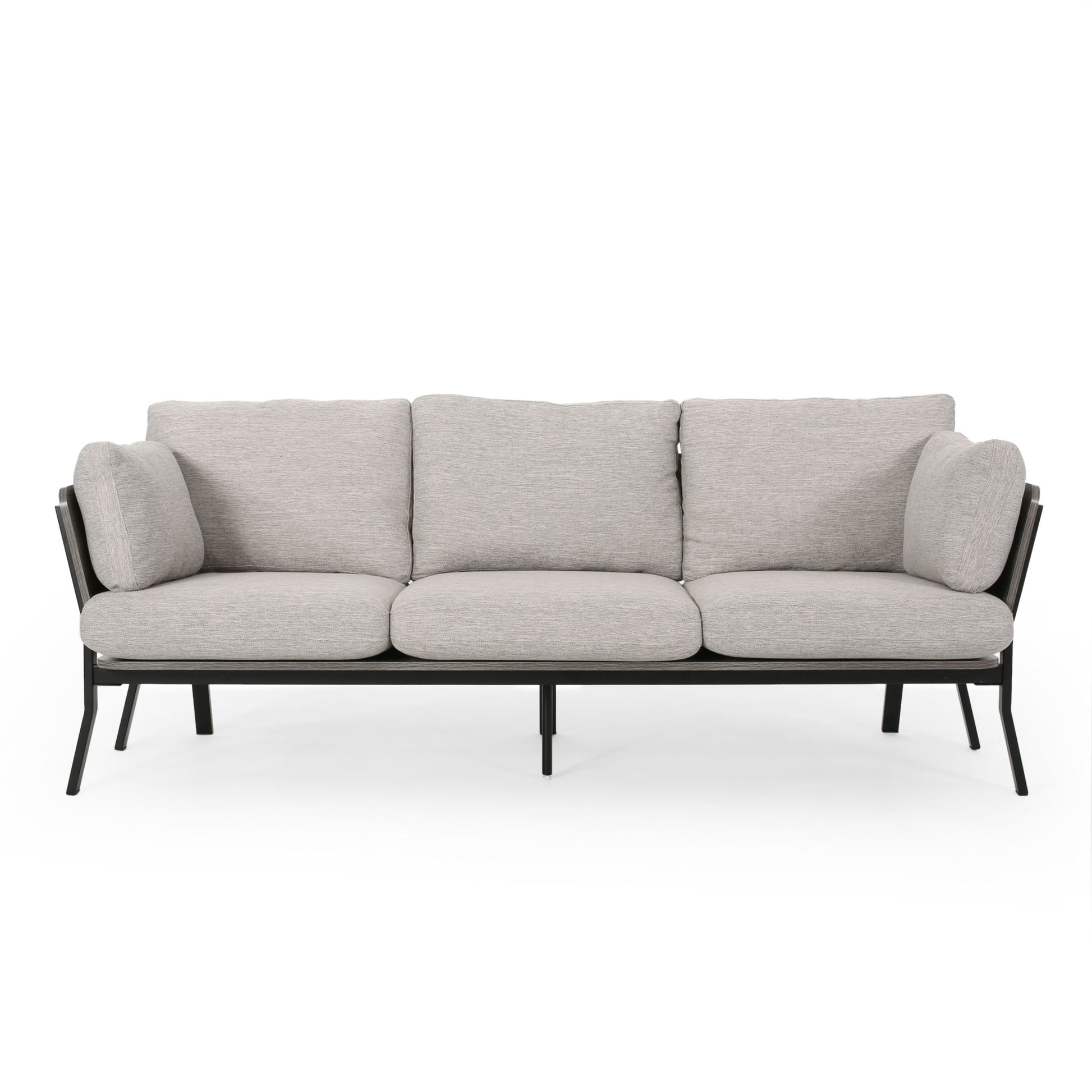 Mid Century Modern 3 Seater Sofa With Pillow Cushions - Light Gray