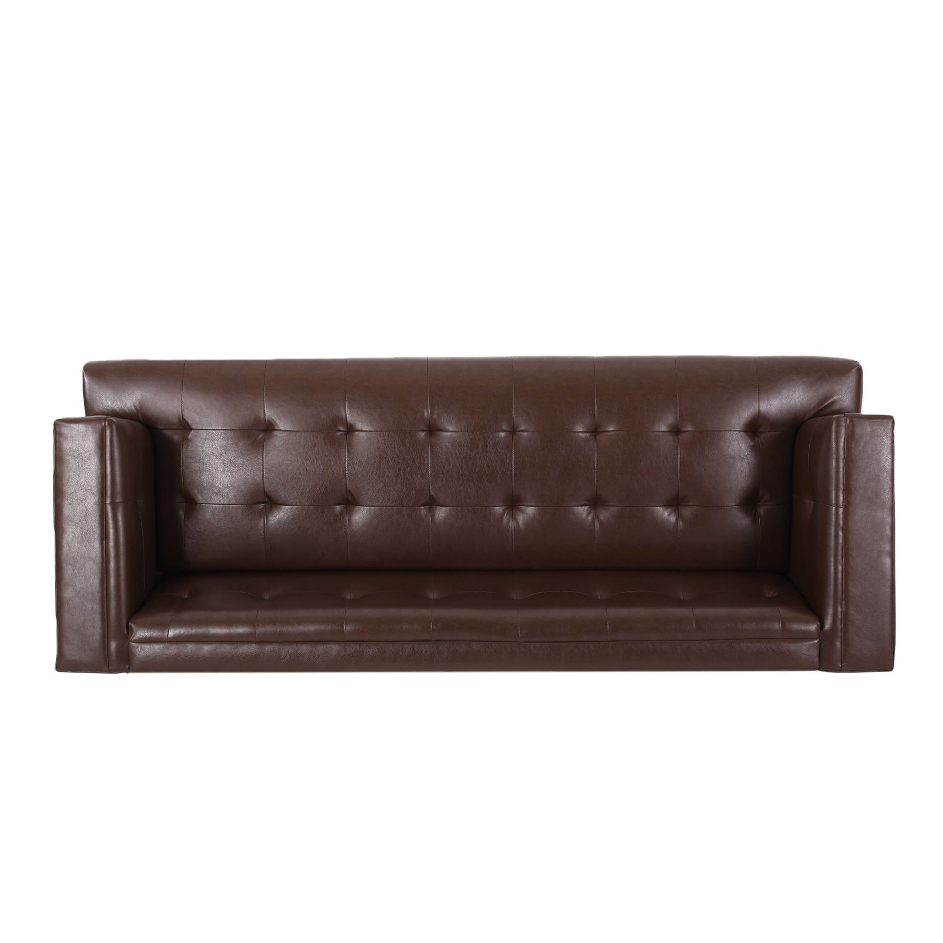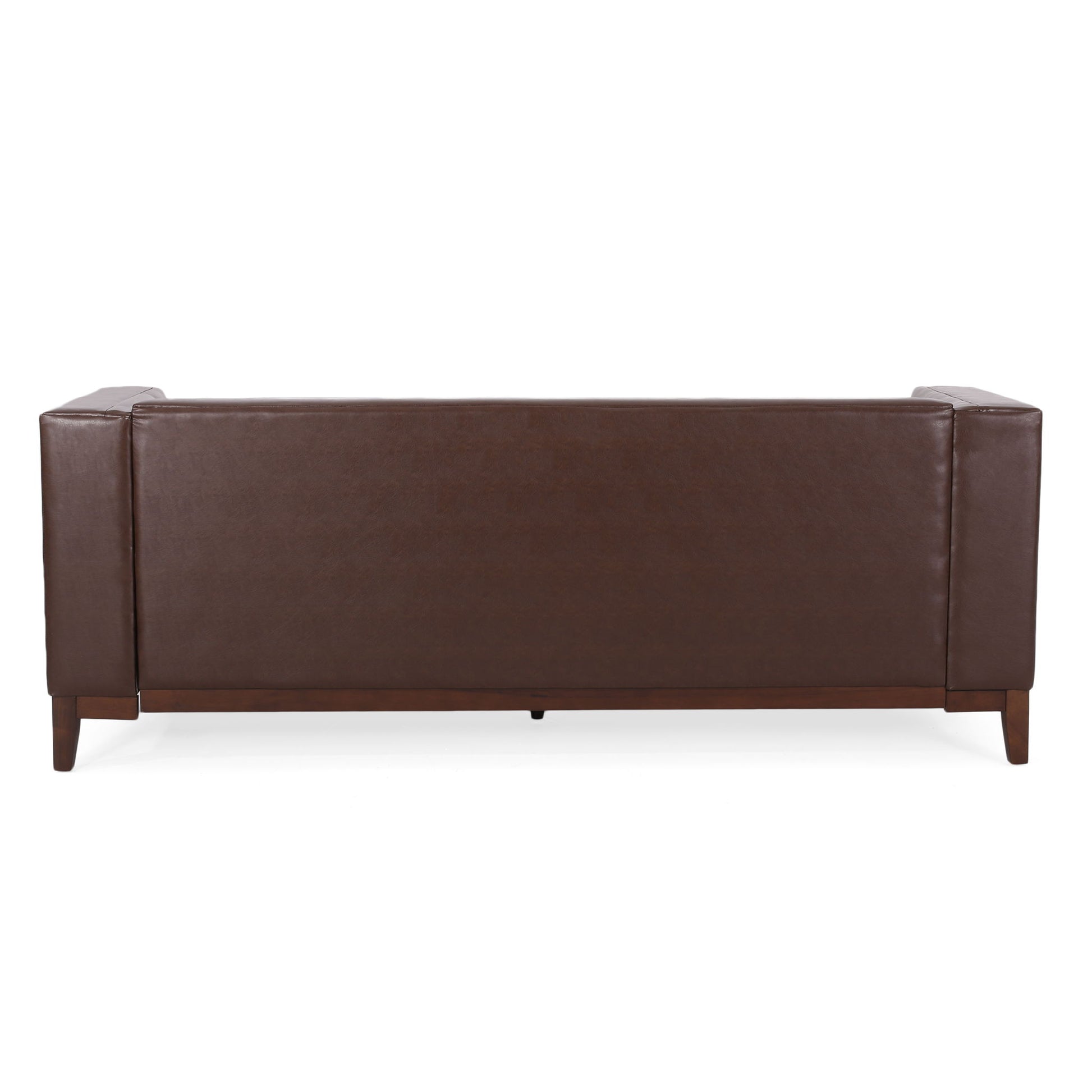 Mid Century Modern 3 Seater Sofa With Tufted Stitching - Dark Brown
