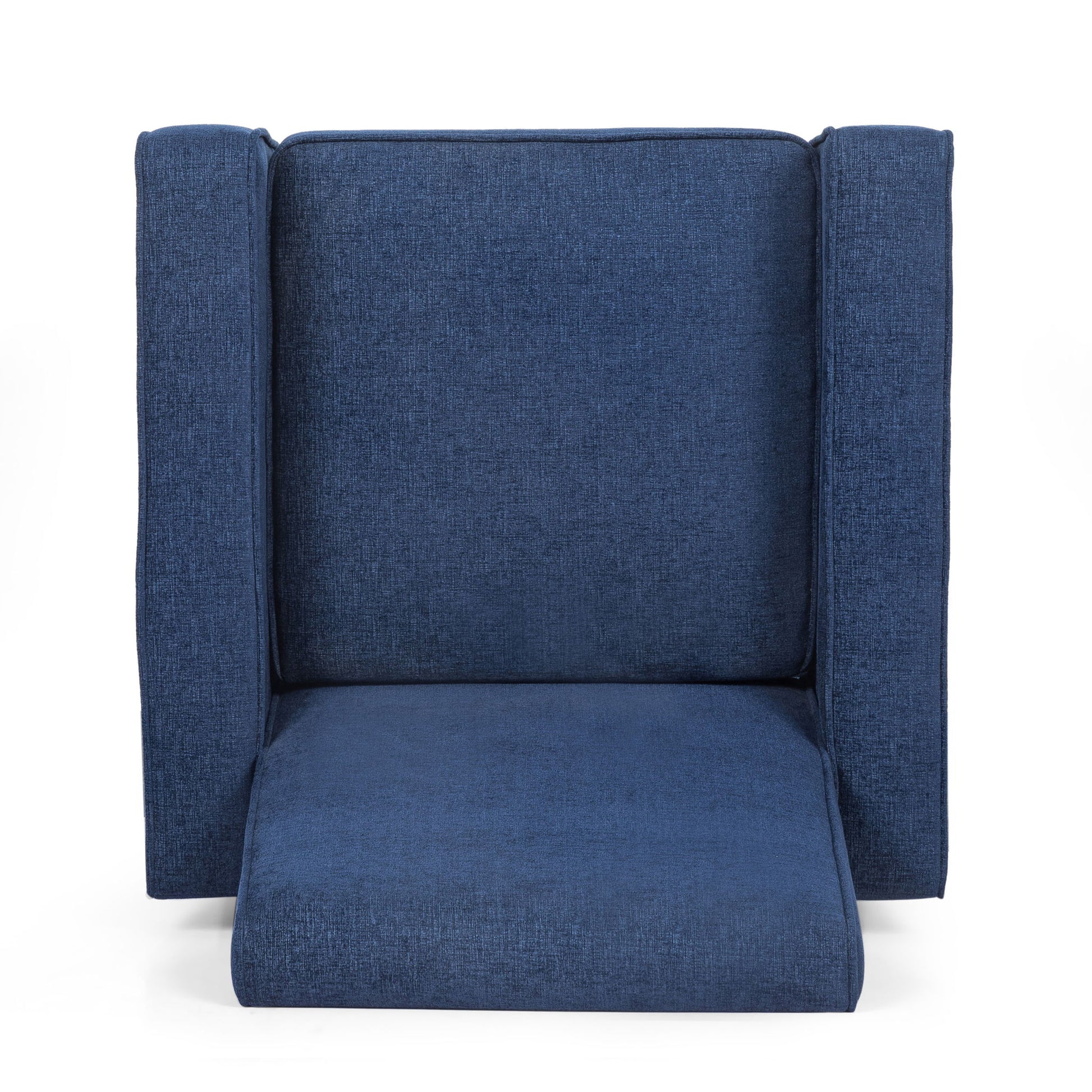 Mid Century Modern Club Chair With Upholstery And Rubberwood Legs - Navy Blue