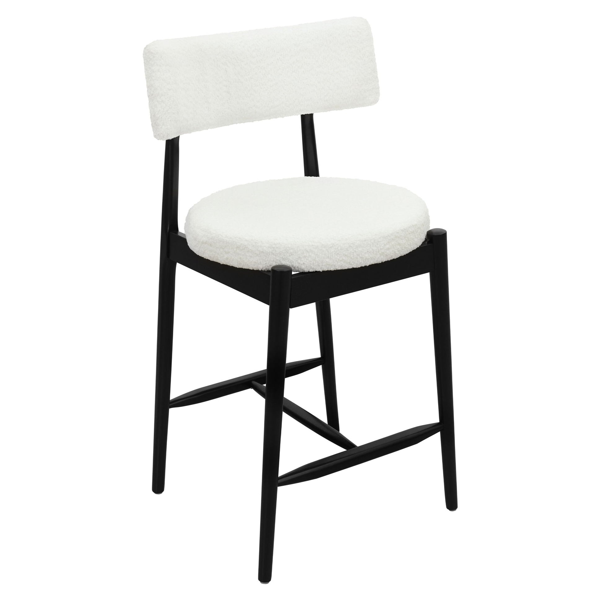 Mid Century Modern Counter Stool (Set of 2) With Upholstered Seat - Black / Beige