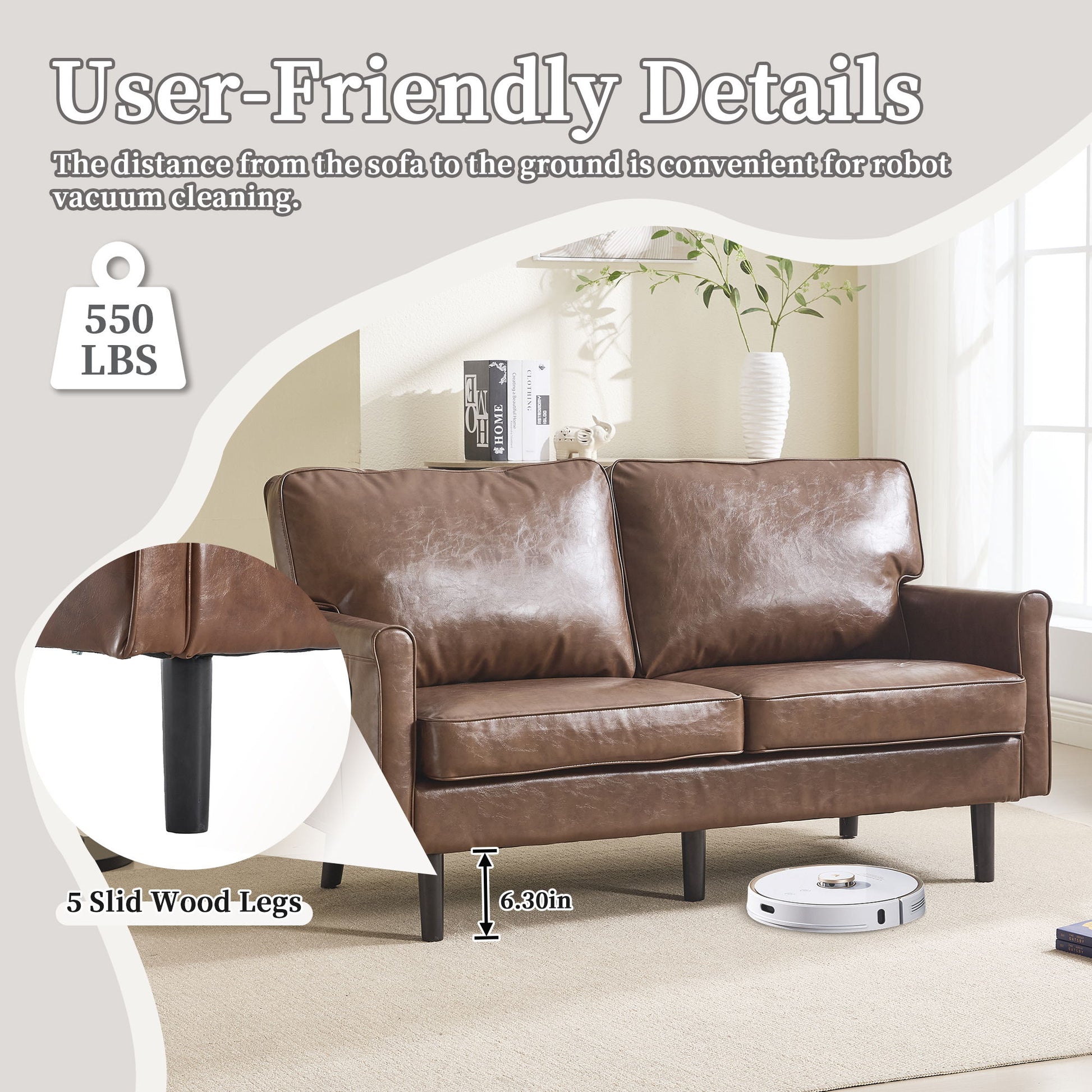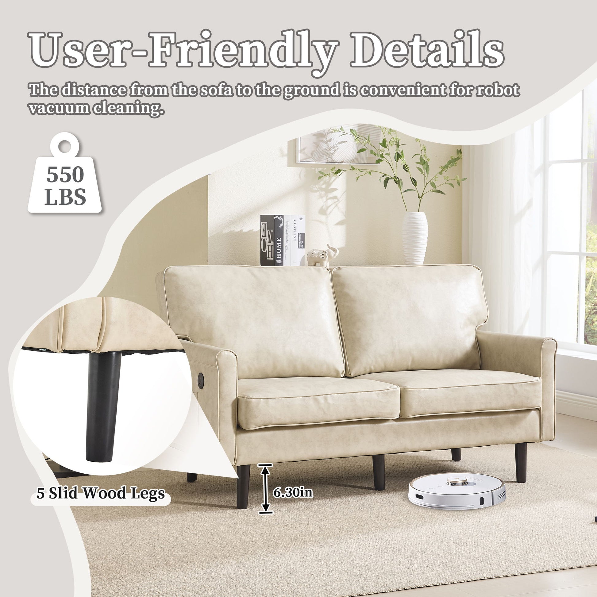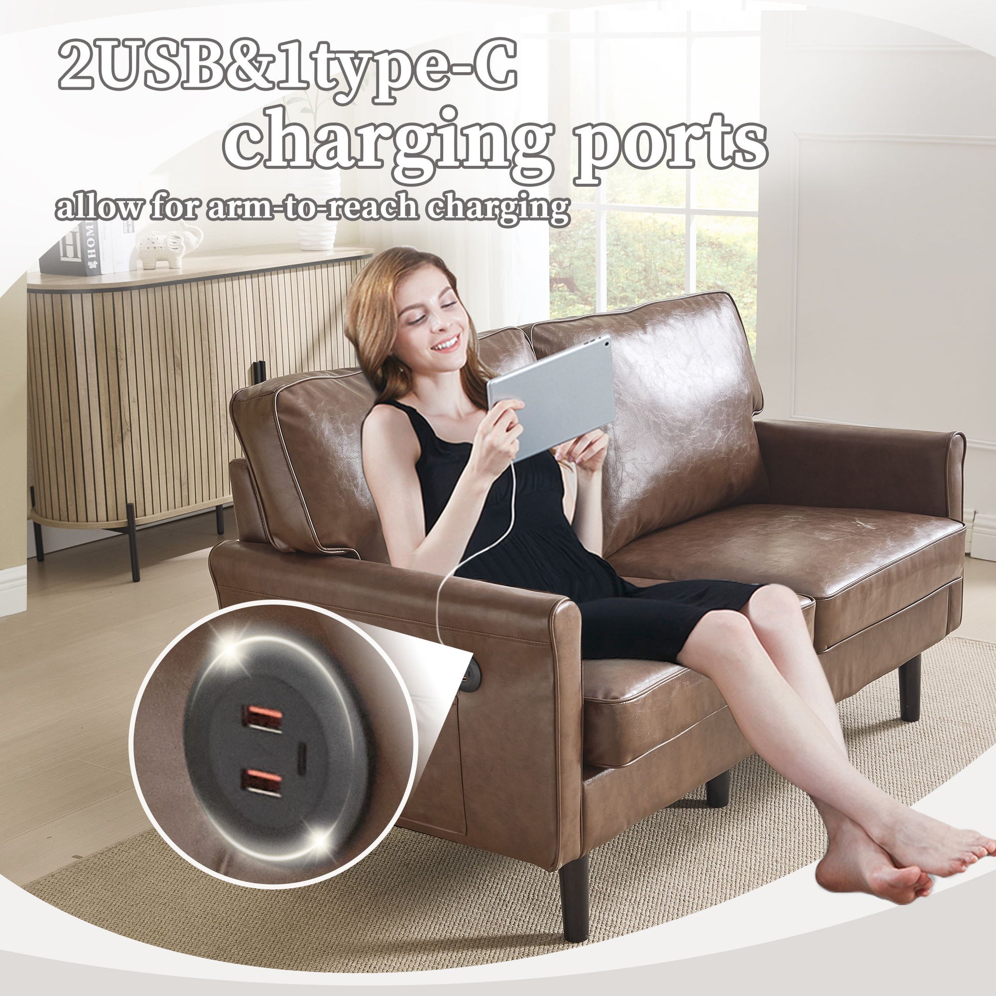 - Multifunctional Sofa & Wood Legs: Equipped with USB & Type C ports for convenient device charging; solid wood legs provide stability for up to 550 lbs.