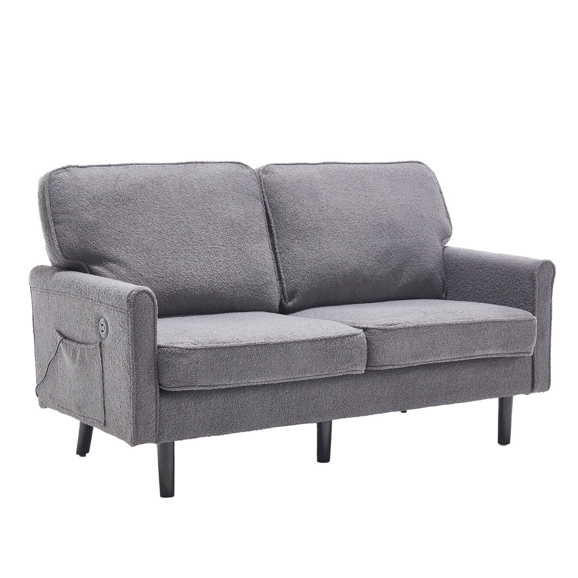 Mid Century Modern Loveseat Sofa, 2 Seater With USB & Removable Pillow Cover - Gray
