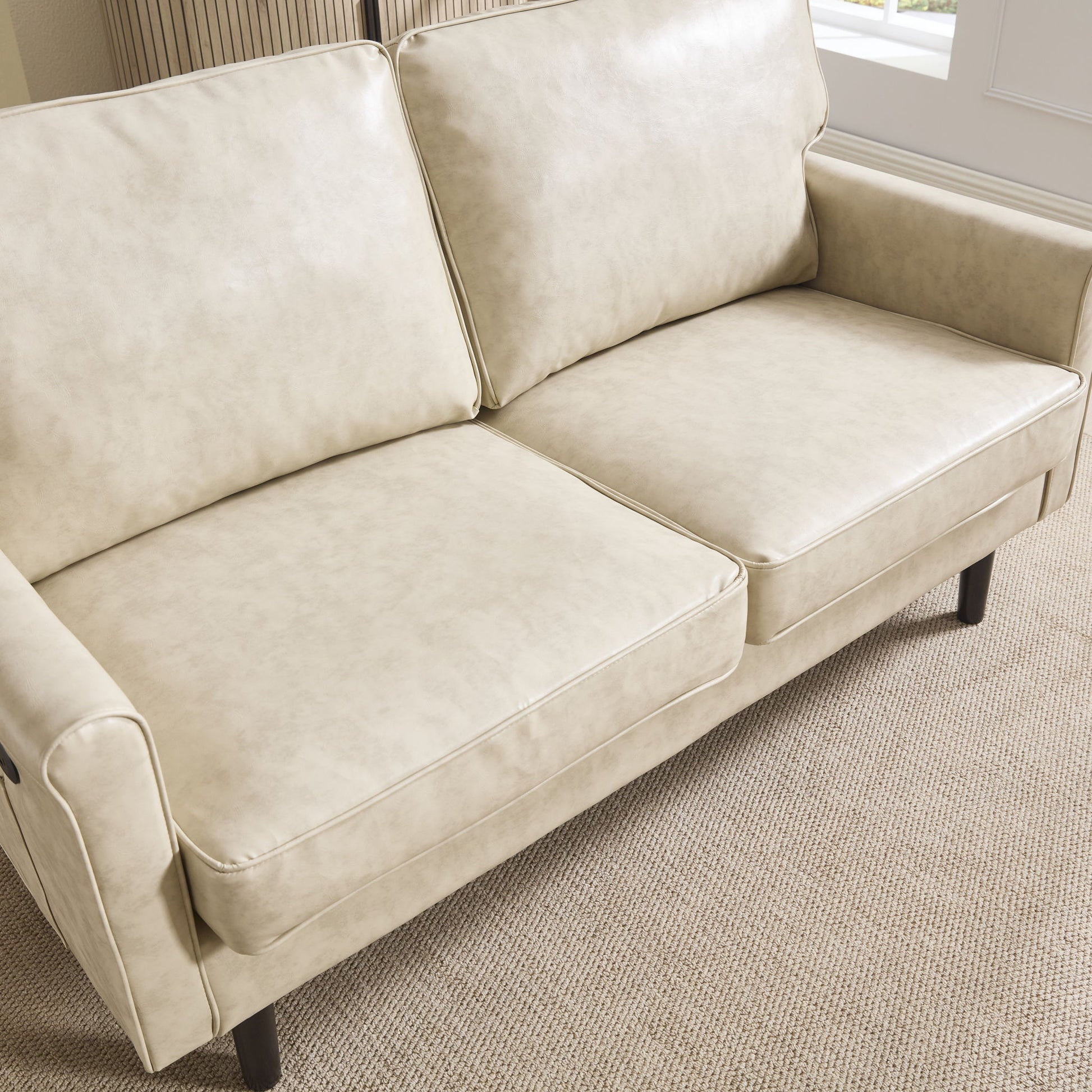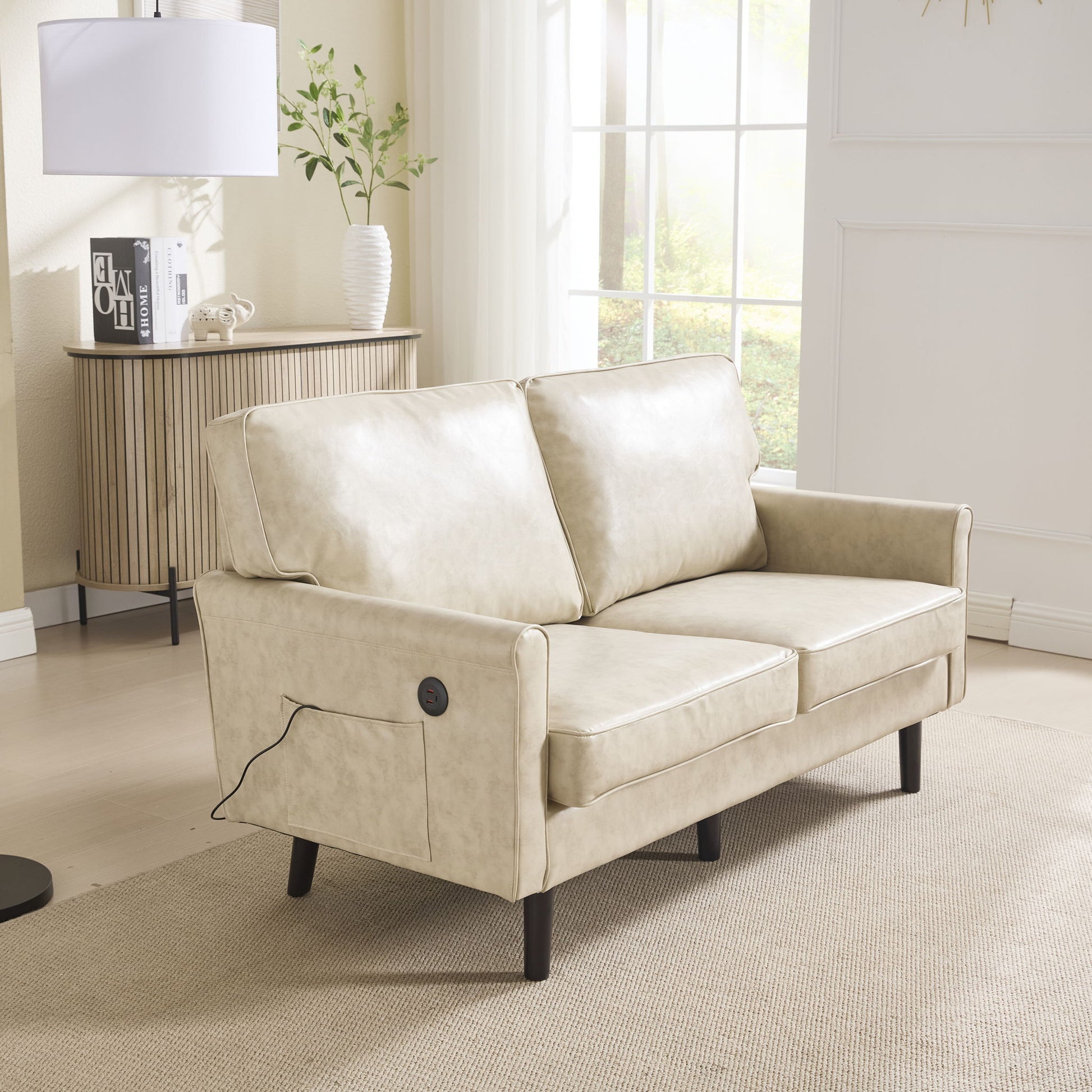 Mid Century Modern Loveseat Sofa With USB, Removable Pillow Cover - Beige