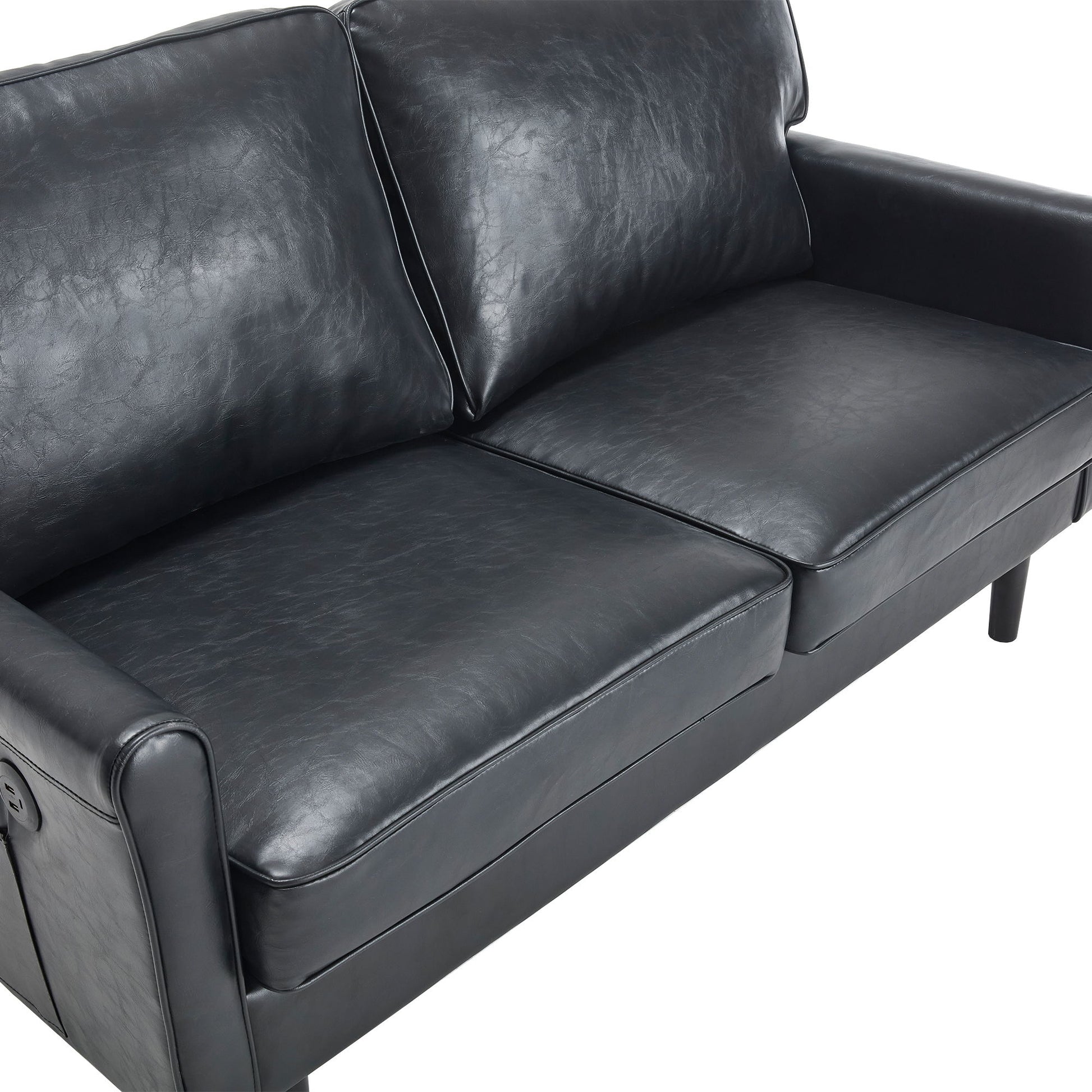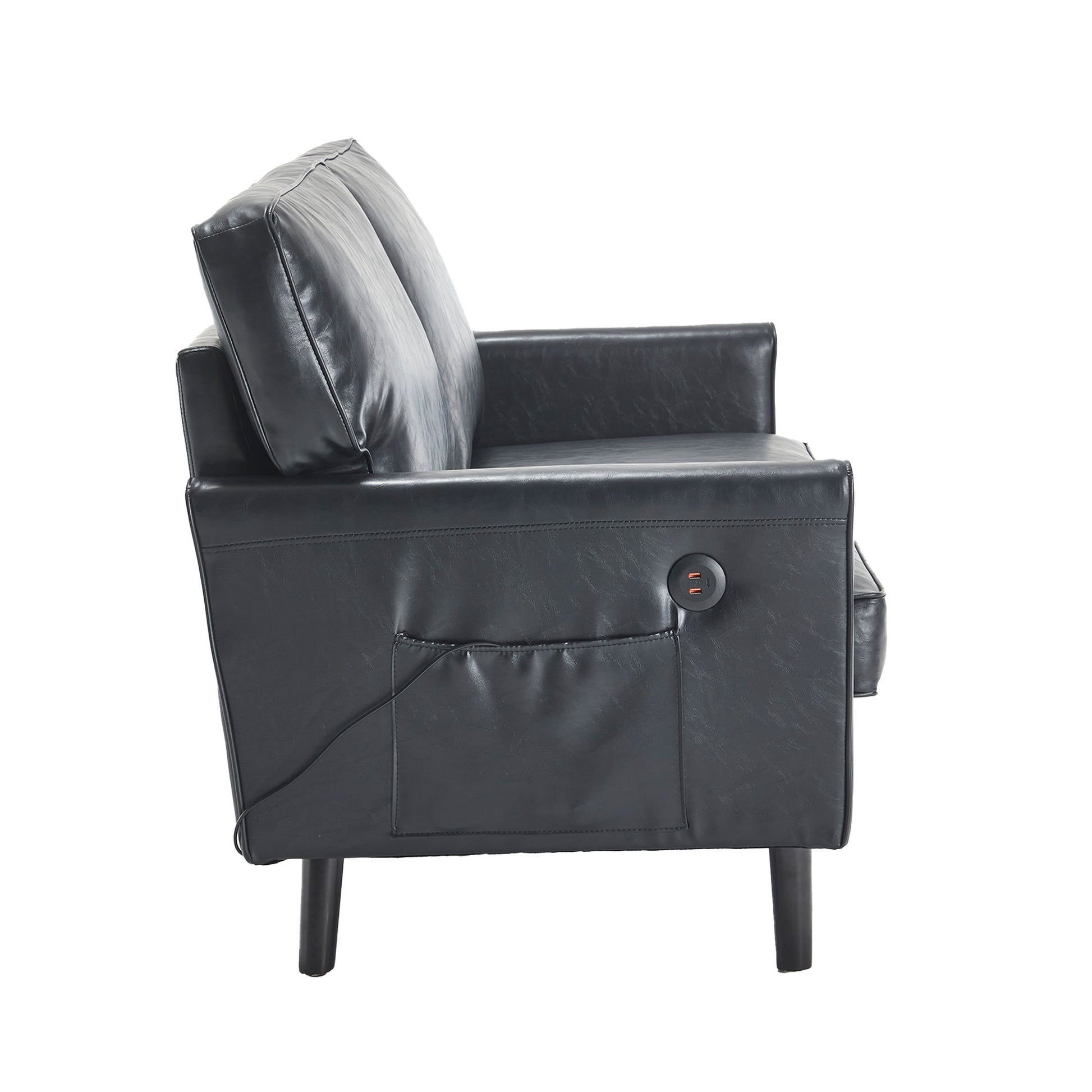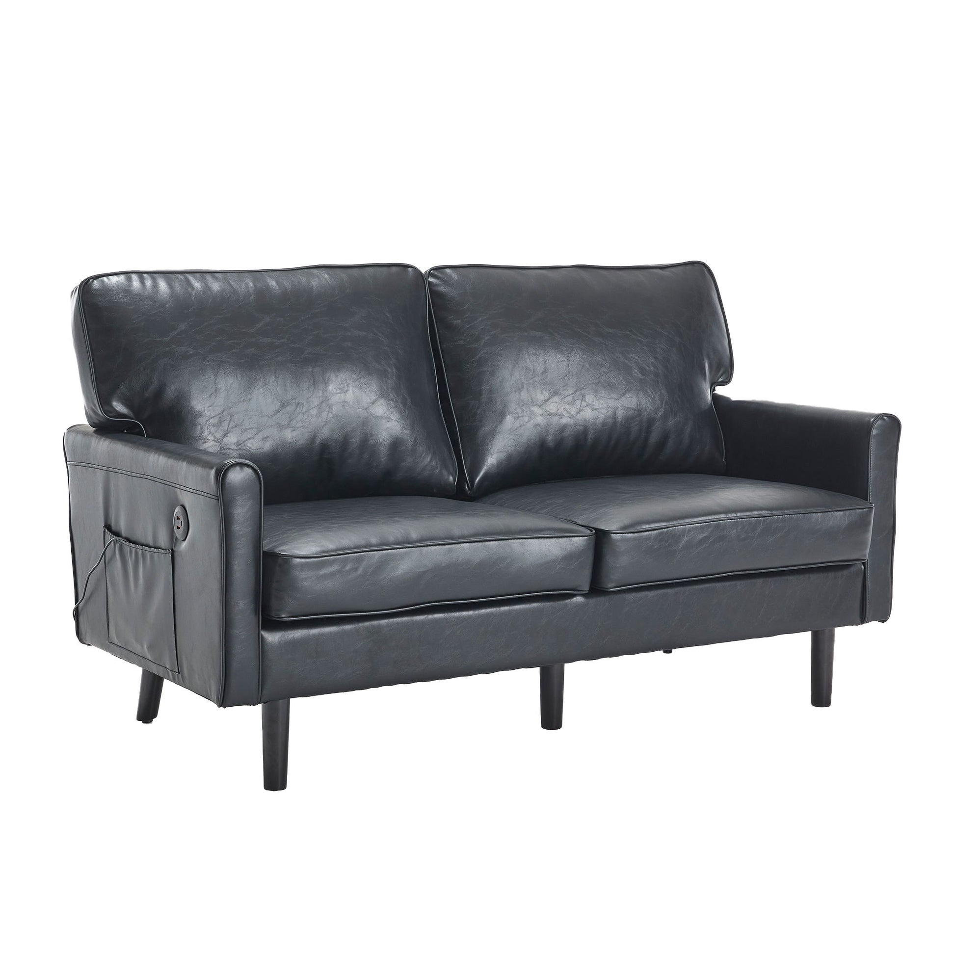 Mid Century Modern Loveseat Sofa, 2 Seater With USB & Removable Pillow Cover - Black