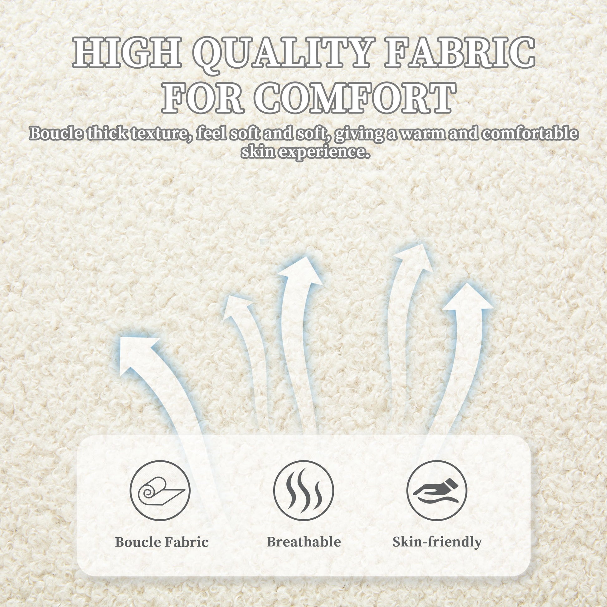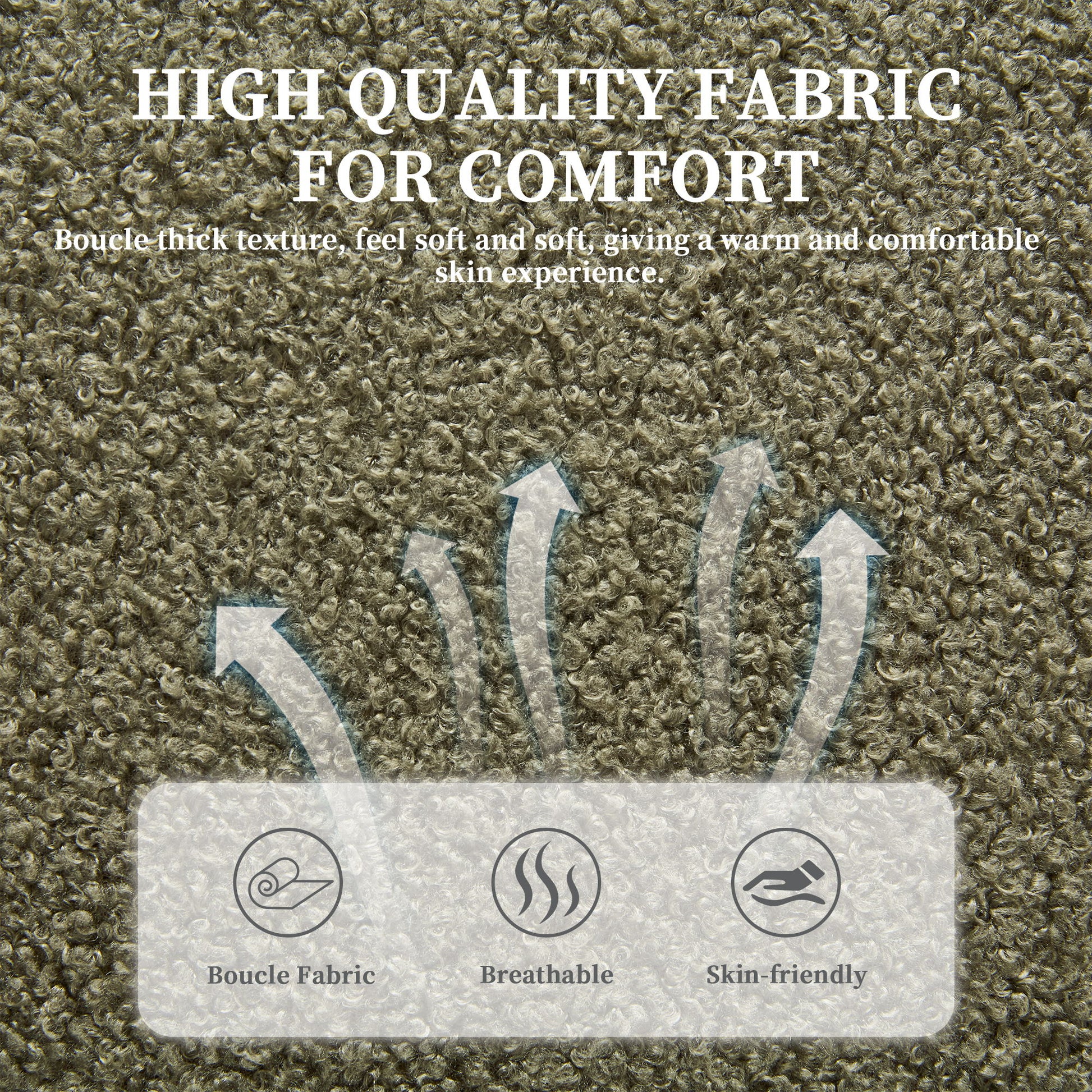 - Detachable Cover & Breathable Fabric: Sofa couch with breathable boucle fabric, stain-resistant and skin-friendly; removable cushion cover for easy washing.