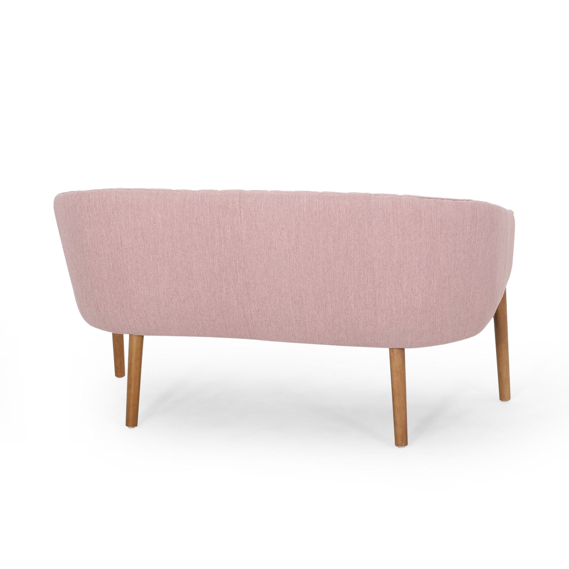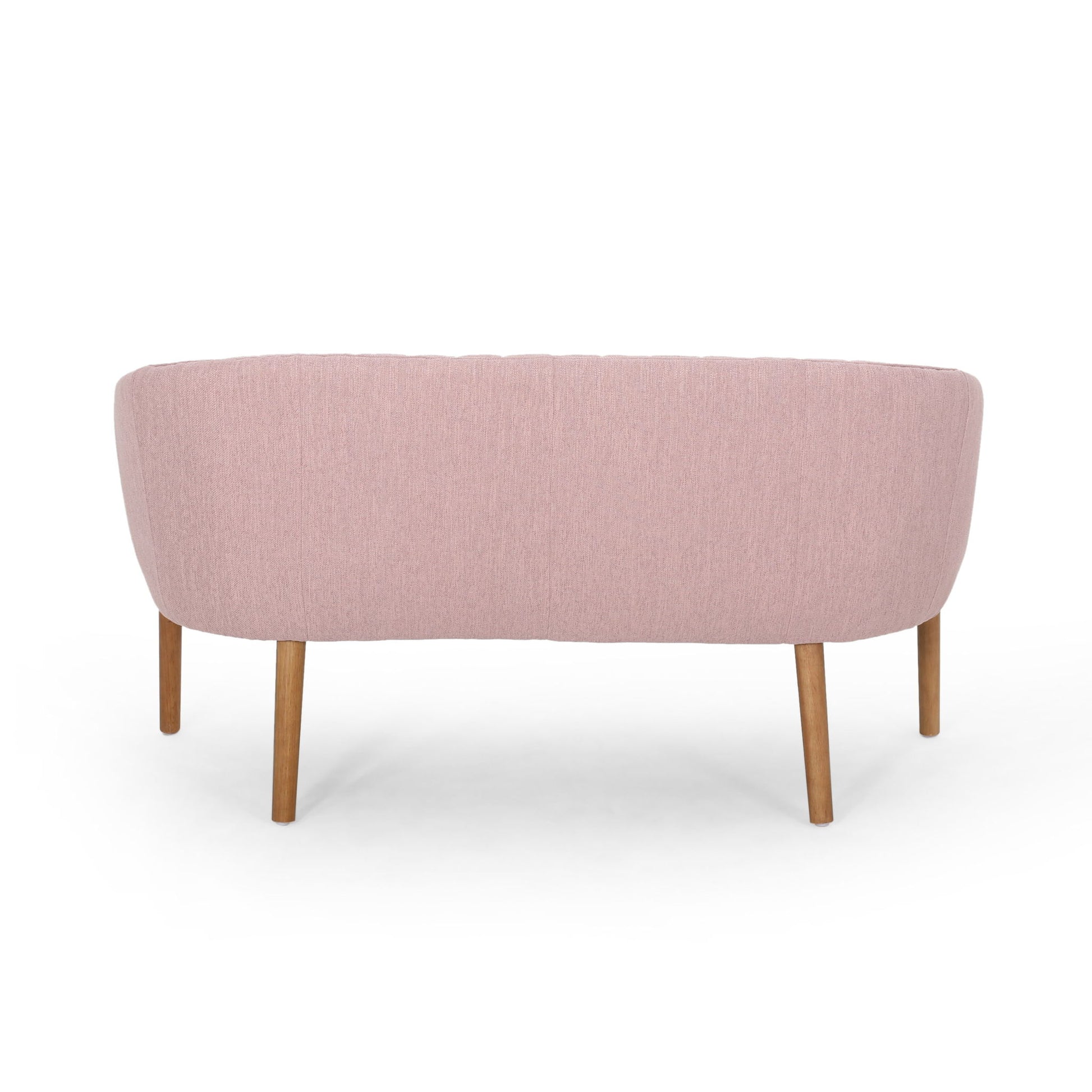 Mid Century Modern Loveseat With Channel Stitched Backrest - Blush
