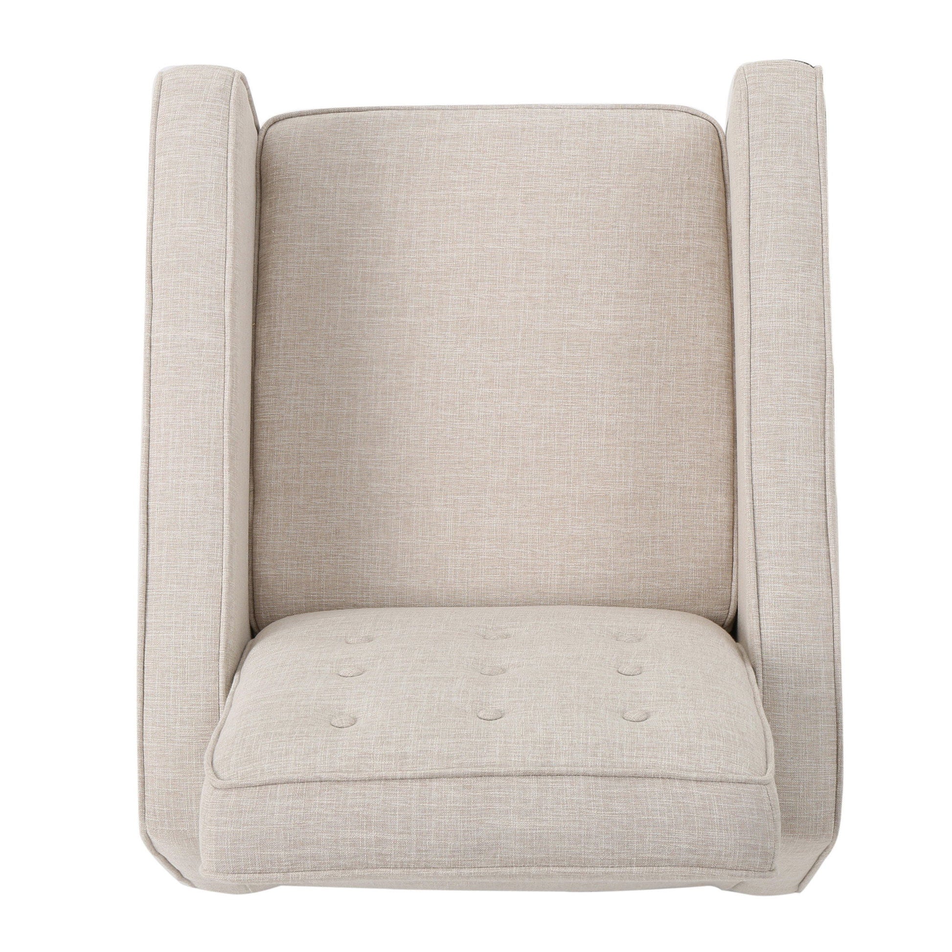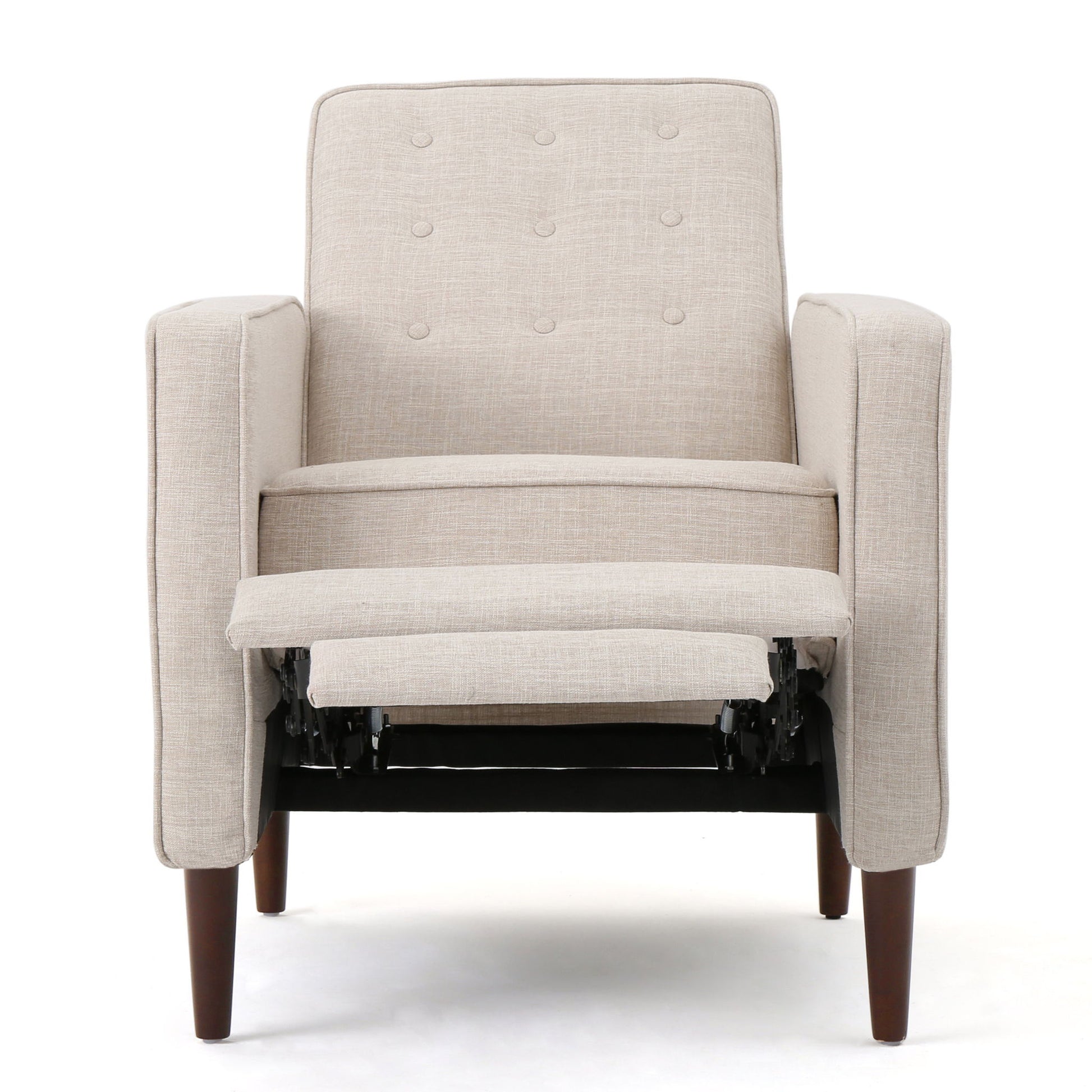 Macedonia - Mid Century Modern Button Tufted Fabric Recliner - Wheat