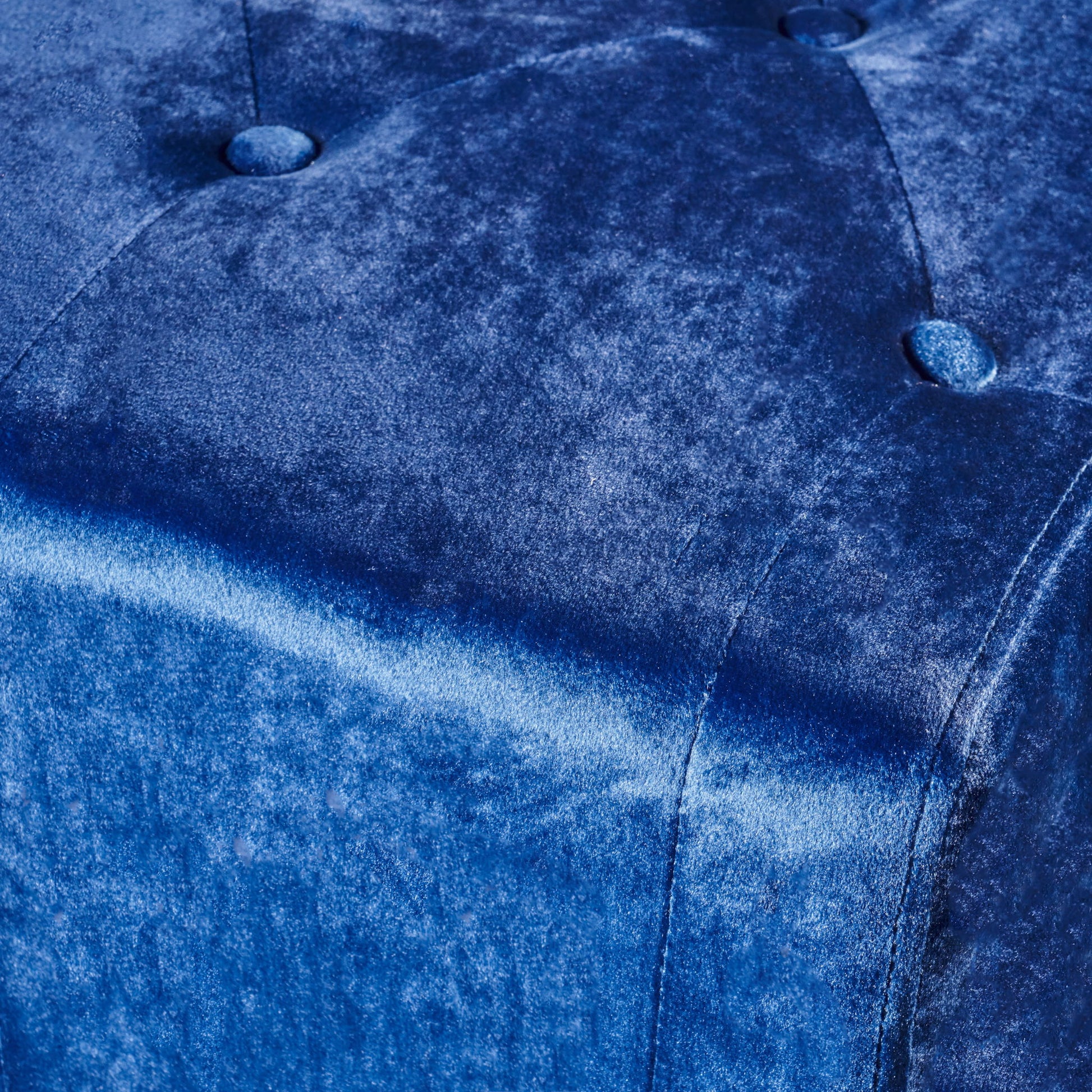 Mid Century Ottoman Velvet With Button Tufting With Birch Wood Legs - Navy Blue