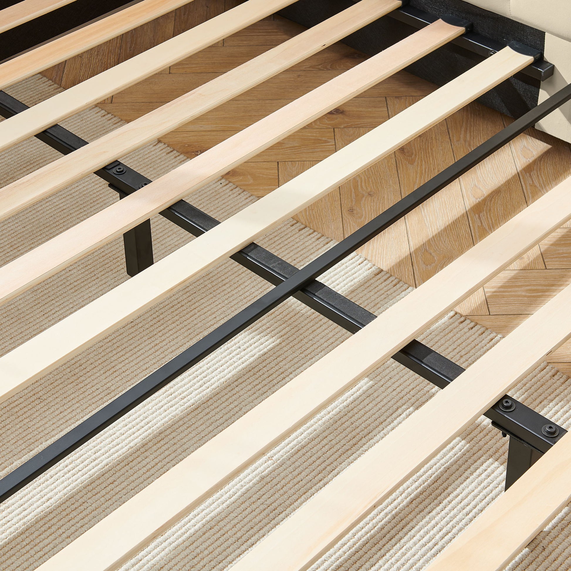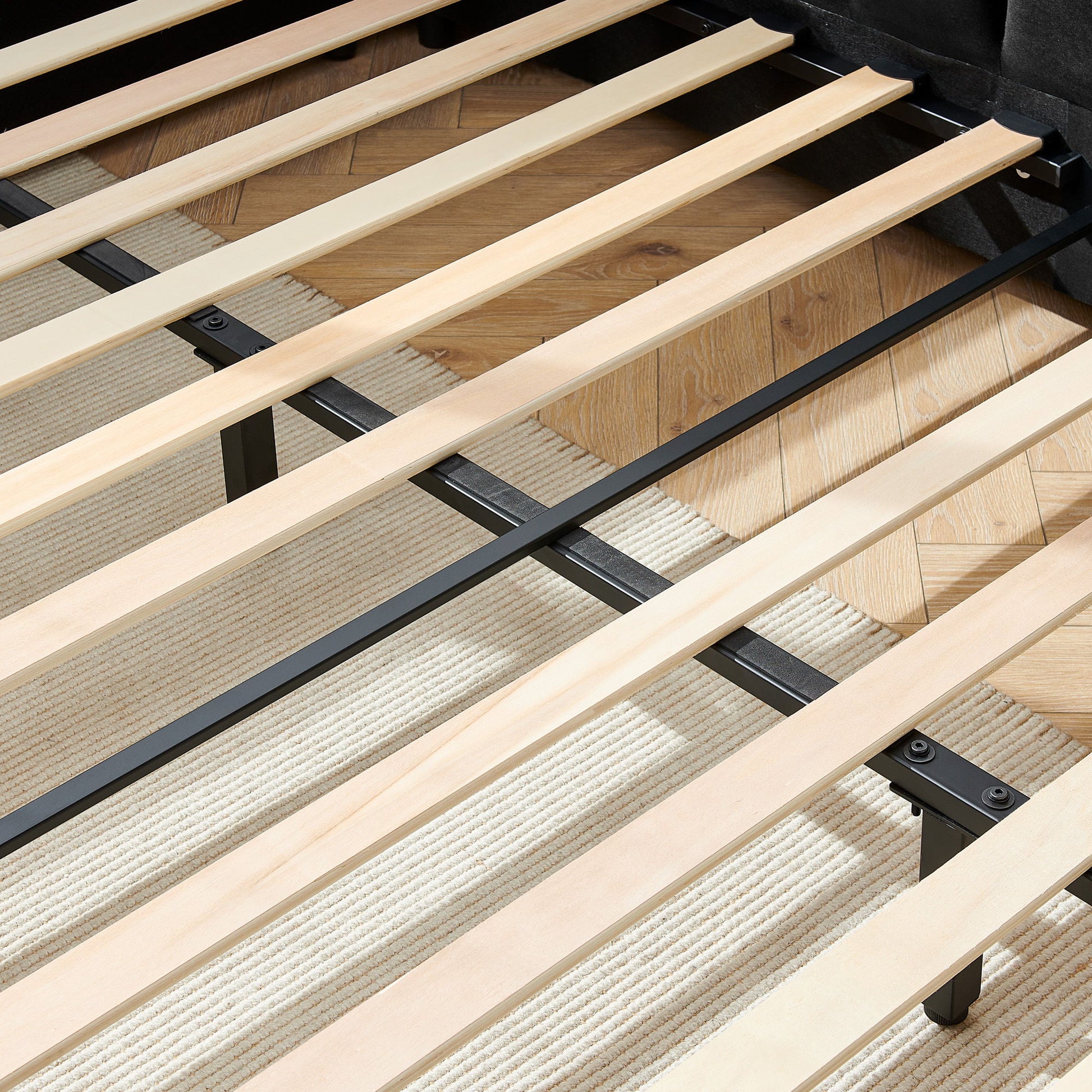 Mid-Century Upholstered Tufted Bed Frame With Backrest And Armrests